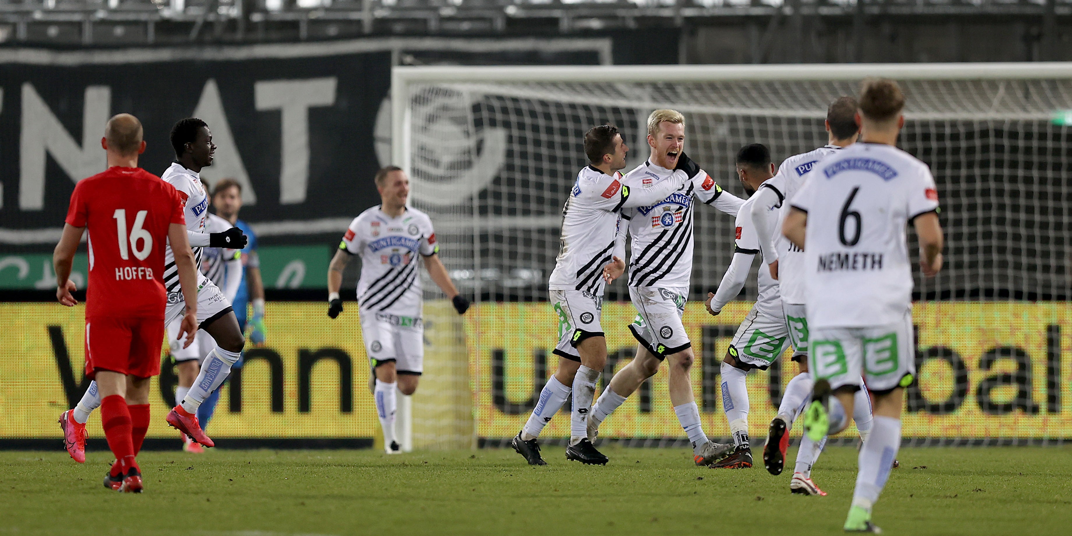 Die "Blackys" schafften damit den vierten Sieg in der Fußball-Bundesliga en suite, während die Niederösterreicher nach guter Leistung in der ersten Hälfte auf den letzten Tabellenplatz zurückfielen. Sturm wahrte den Anschluss zum Spitzentrio LASK, Salzburg und Rapid und überholte die Wiener vorerst sogar dank der besseren Tordifferenz.