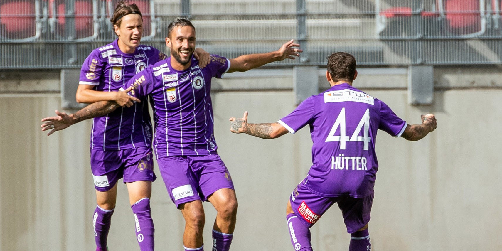 Austria Klagenfurt feiert mit Trainer Peter Pacult einen engen 4:3-Heimsieg gegen Hartberg in der 3. Bundesliga-Runde.