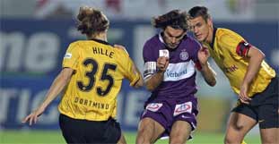 Mit einem gerechten 3:3 (1:1) haben sich die Wiener Austria und Borussia Dortmund am Freitag in einem Freundschaftsspiel anlässlich der Einweihung der neuen Osttribüne des Horr-Stadions getrennt. In einer kurzweiligen Partie waren Bazina (29.), Krammer (61.) und Topic (66.) die Torschützen für die Favoritner, aufseiten der Deutschen trafen Klimowicz (14.), Öztekin (82.) und Sadrijaj (86.).