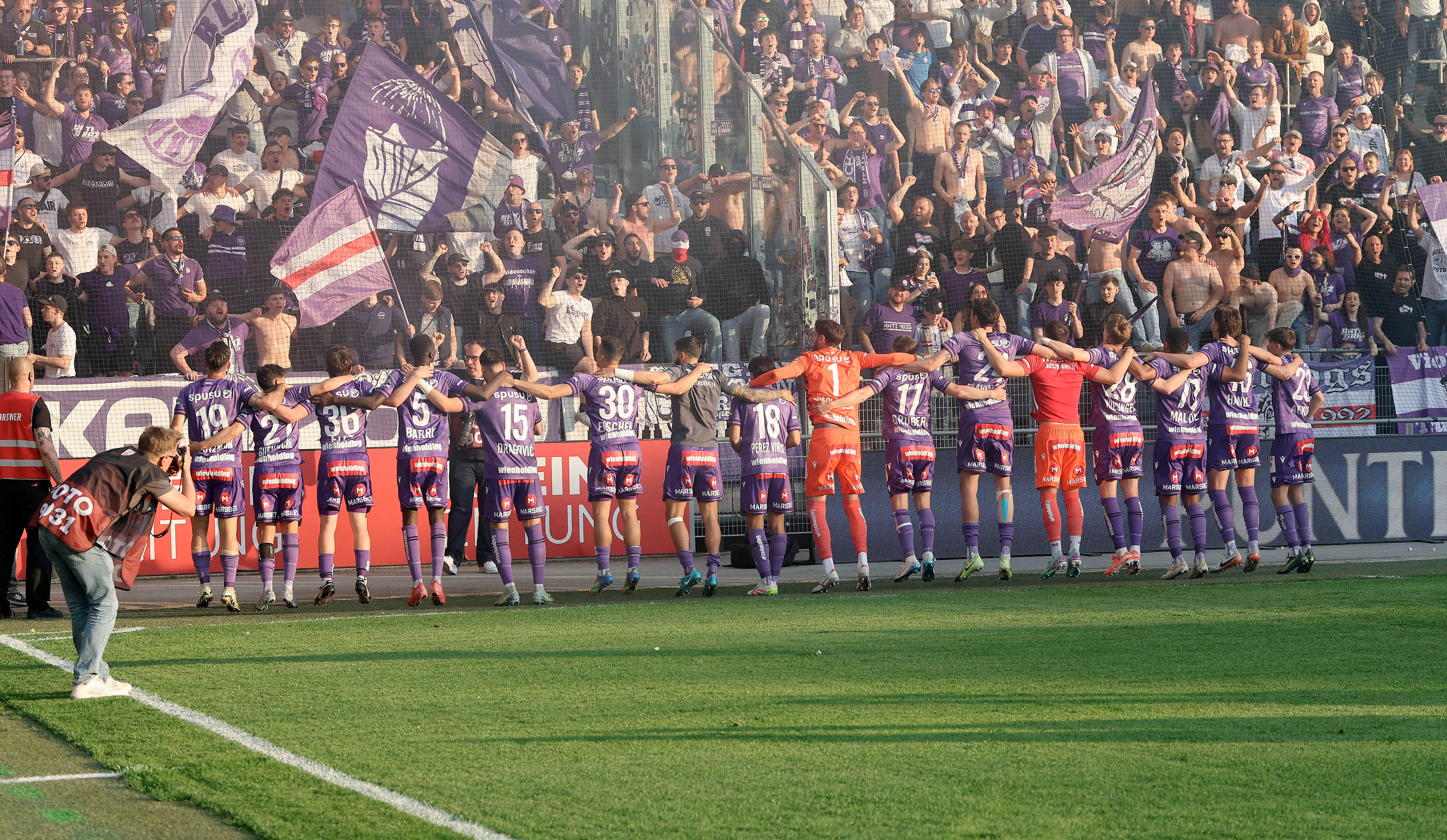Was für ein Moment! Mit der gesamten Mannschaft zusammen trällerten die Violetten ausgelassen den legendären Hit aus 1993, der damals 22 Wochen lang die Charts stürmte und nicht nur in Österreich, sondern weltweit ein Hit war.