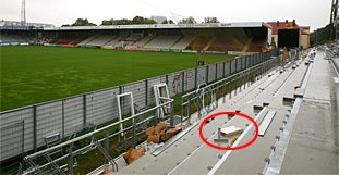 in einem abgeriegelten Sektor auf der Südtribüne untergebracht). Die lose