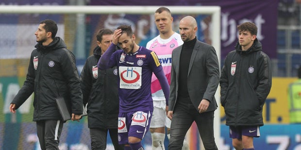 Wien. Die Austria kommt einfach nicht raus aus der Krise! Nach dem 0:2 beim LASK liegen die Veilchen schon acht Punkte hinter den Top 6 – und nur drei Zähler vor dem Abstiegsplatz! Heißt: Der Abstiegskampf ist näher als die angepeilte Meisterrunde! Die Fans sind ob der wiederholt miserablen Leistungen stinksauer. Im Zentrum der Kritik steht AG-Boss Markus Kraetschmer. Tiefpunkt: In Pasching sorgten einige Chaoten mit Rauchbomben sogar für eine Spielunterbrechung.