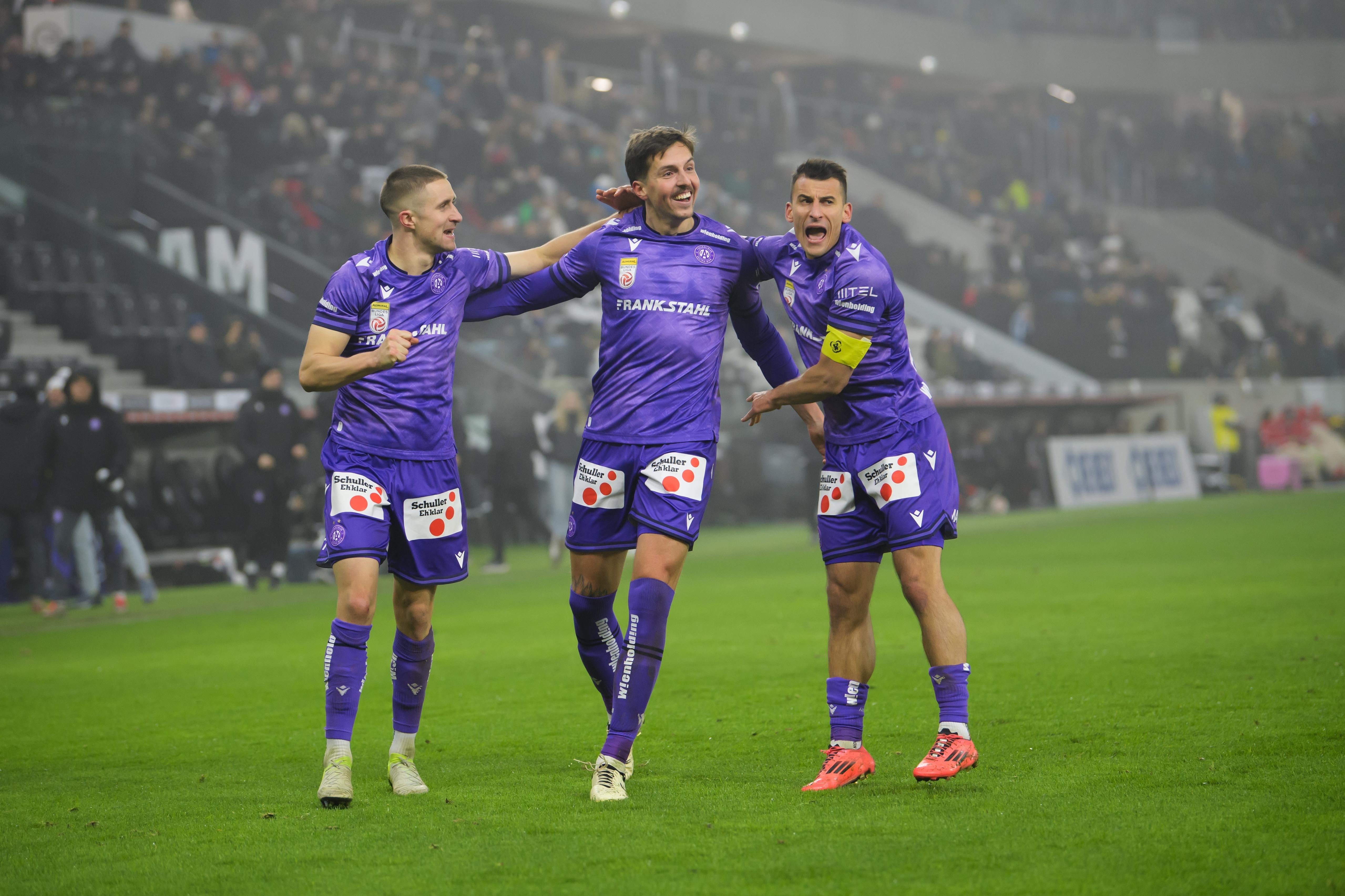 Die Elf von Trainer Stephan Helm prolongierte ihre lange Siegesserie und ist nun nicht nur erster Verfolger von Meister Sturm Graz, sondern überholte auch den Stadtrivalen aus Hütteldorf. Überschattet wurde die Partie von wiederholten minutenlangen Unterbrechungen durch Pyrotechnik auf den Rängen - die Wiener behielten aber den Durchblick.