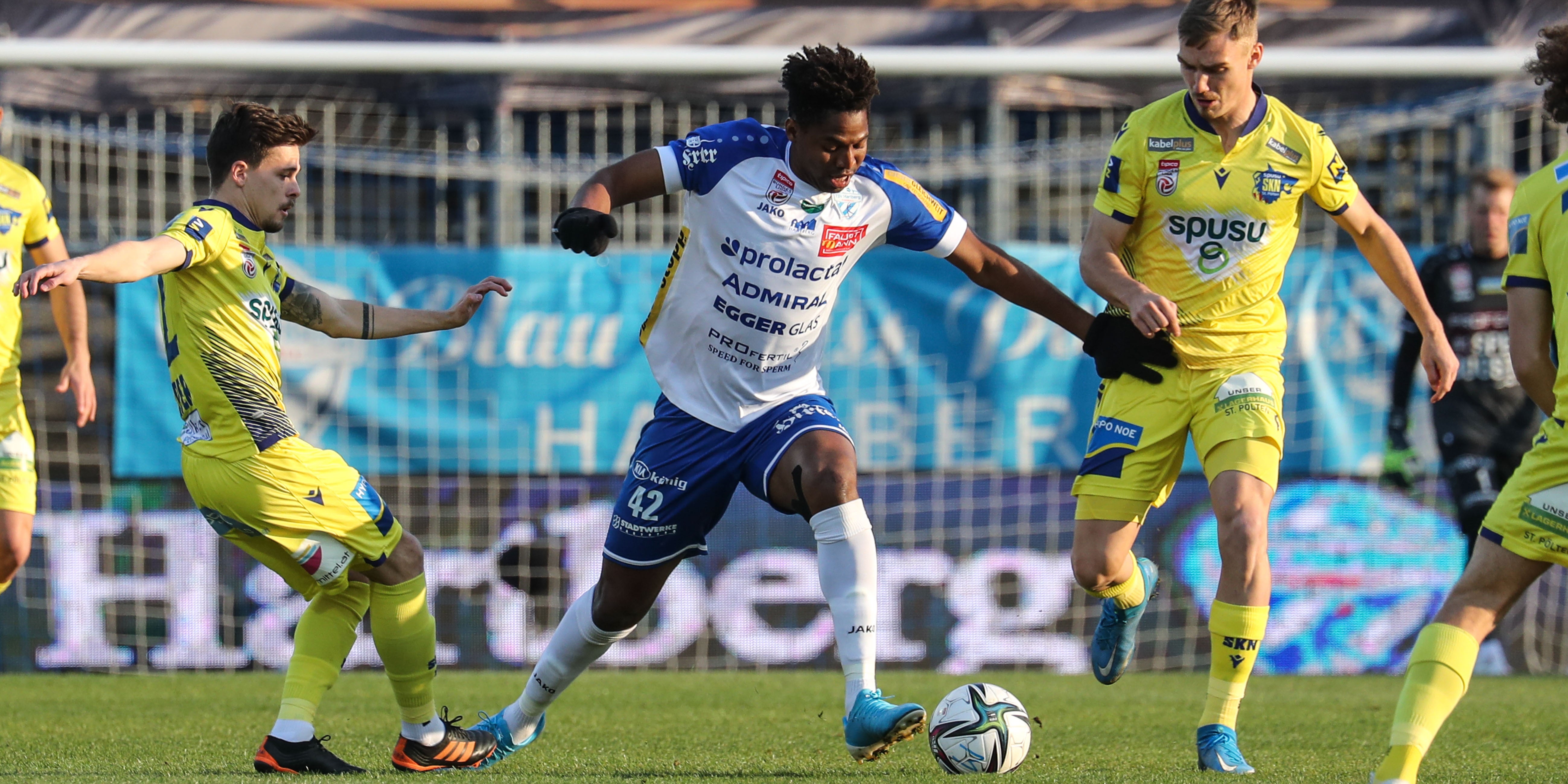 Der SKN St. Pölten ist neues Schlusslicht in der Fußball-Bundesliga. Die Niederösterreicher erkämpften sich am Dienstagabend in der 4. Runde der Qualifikationsgruppe zwar ein etwas schmeichelhaftes 0:0-Remis beim TSV Hartberg, fielen allerdings zwei Punkte hinter den Neo-Vorletzten Admira zurück, da der Niederösterreich-Rivale beim SCR Altach mit 1:0 die Oberhand behielt. Die Vorarlberger haben auch nur drei Zähler Luft zum Tabellenende