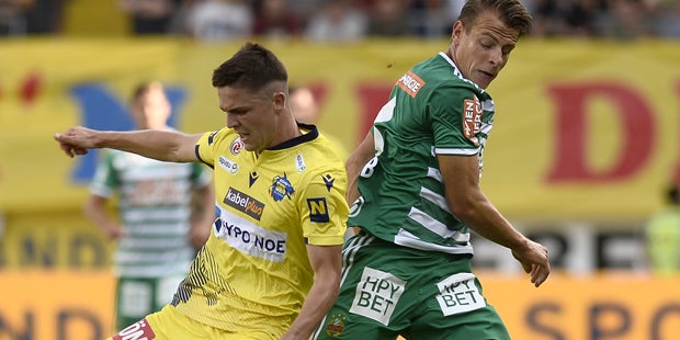 Die Führung Rapids resultierte aus einem Geschenk der Gastgeber. Fountas nützte einen katastrophalen Fehlpass von Daniel Luxbacher und schoss die Grün-Weißen gegen seinen Ex-Club in Führung (39.).