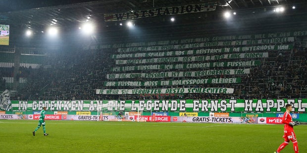Vor der Partie gegen Altach würdigte man im "Block West" Legende Ernst Happel mit acht Sprüchen. "Der Fußball muss ein Volkssport bleiben", "I brauch kane Spüler, de wos an Beistrich in da Unterhosn ham", "Ich will immer alles gewinnen, und wenn ich nicht alles gewinnen kann, will ich den Rest noch gewinnen" war in Gedenken an den "Wödmasta" zu lesen, dessen Todestag sich am 14. November zum 25 Mal jährte.