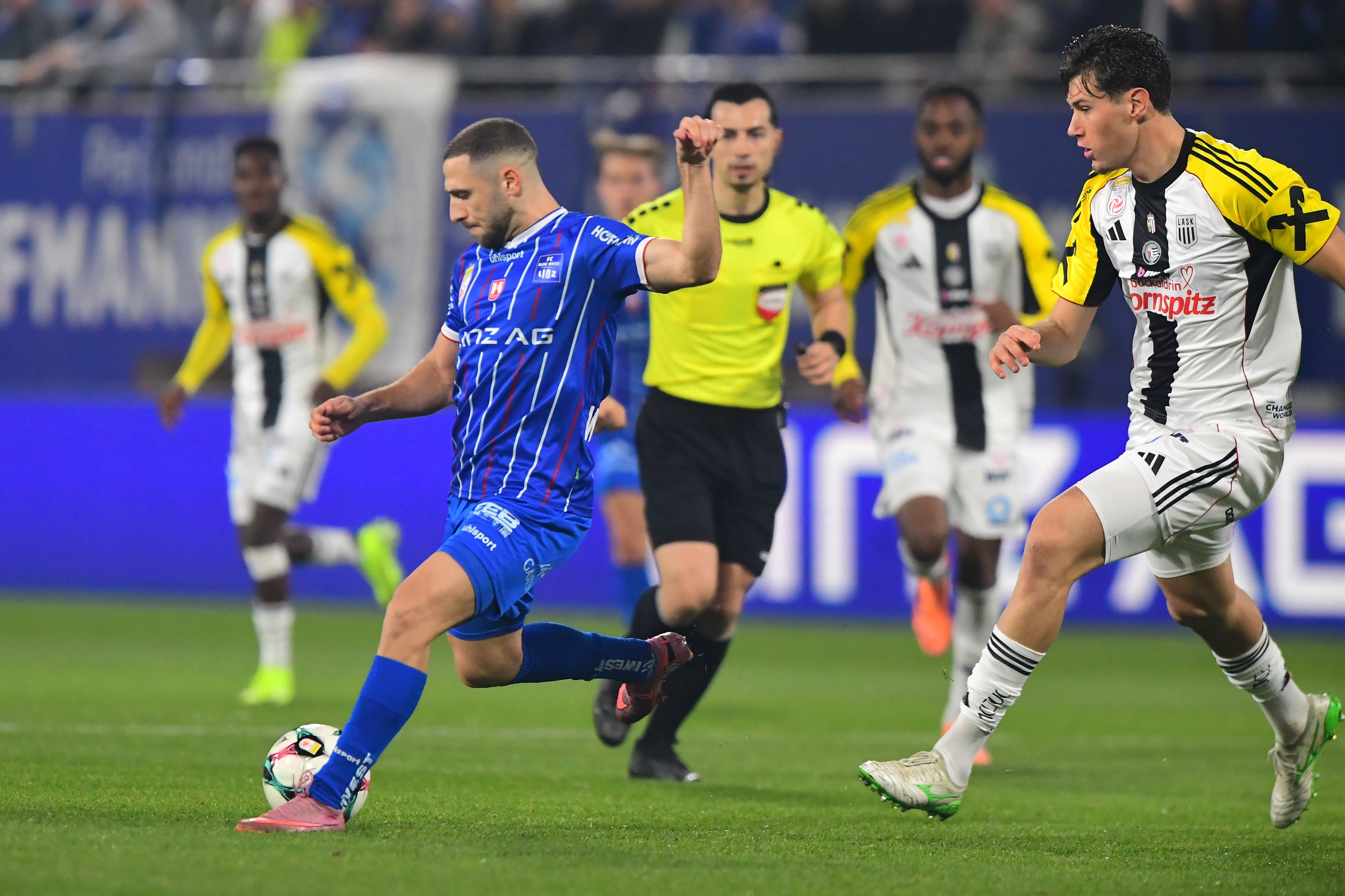 Die Kühbauer-Elf hatte nun die Partie gut im Griff, zwei echte Schrecksekunden gab es für die Schwarz-Weißen allerdings noch. Zweimal entschied Schiedsrichter Isa Simsek auf Elfmeter für Blau-Weiß, nahm seine Entscheidungen nach VAR-Check aber zurecht zurück. In der 75. Minute hatte Sascha Horvath gegen Mamadou Fofana kein Foul begangen, in der 99. Minute war es ein vermeintliches Handspiel eines LASK-Spielers.