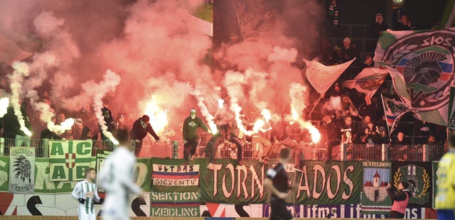 Mit einem Spruchband brachten sie ihre Meinung zu den Strafen an die Rapid-Chaoten nach dem Derby-Slandal zum Ausdruck: "Ey Austriaschweine, habt ihr Mal Feuer?!" bzw. "Kollektivstrafen raus aus den Köpfen von Funktionären. Auch in Österreich", wurde plakatiert.