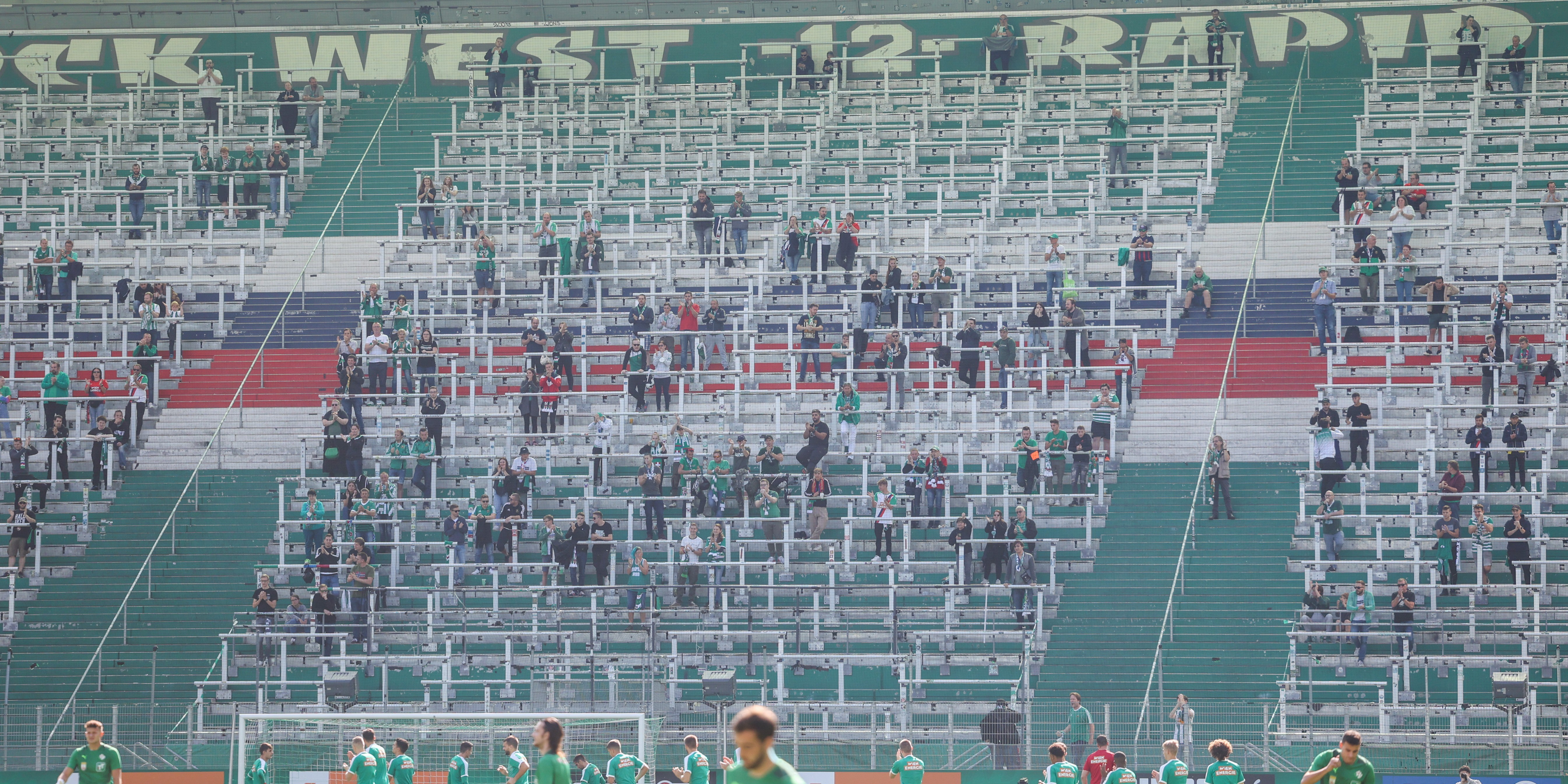 Nur 10.200 Rapid-Fans verirrten sich ins Stadion, der Anhang protestiert gegen 2-G.