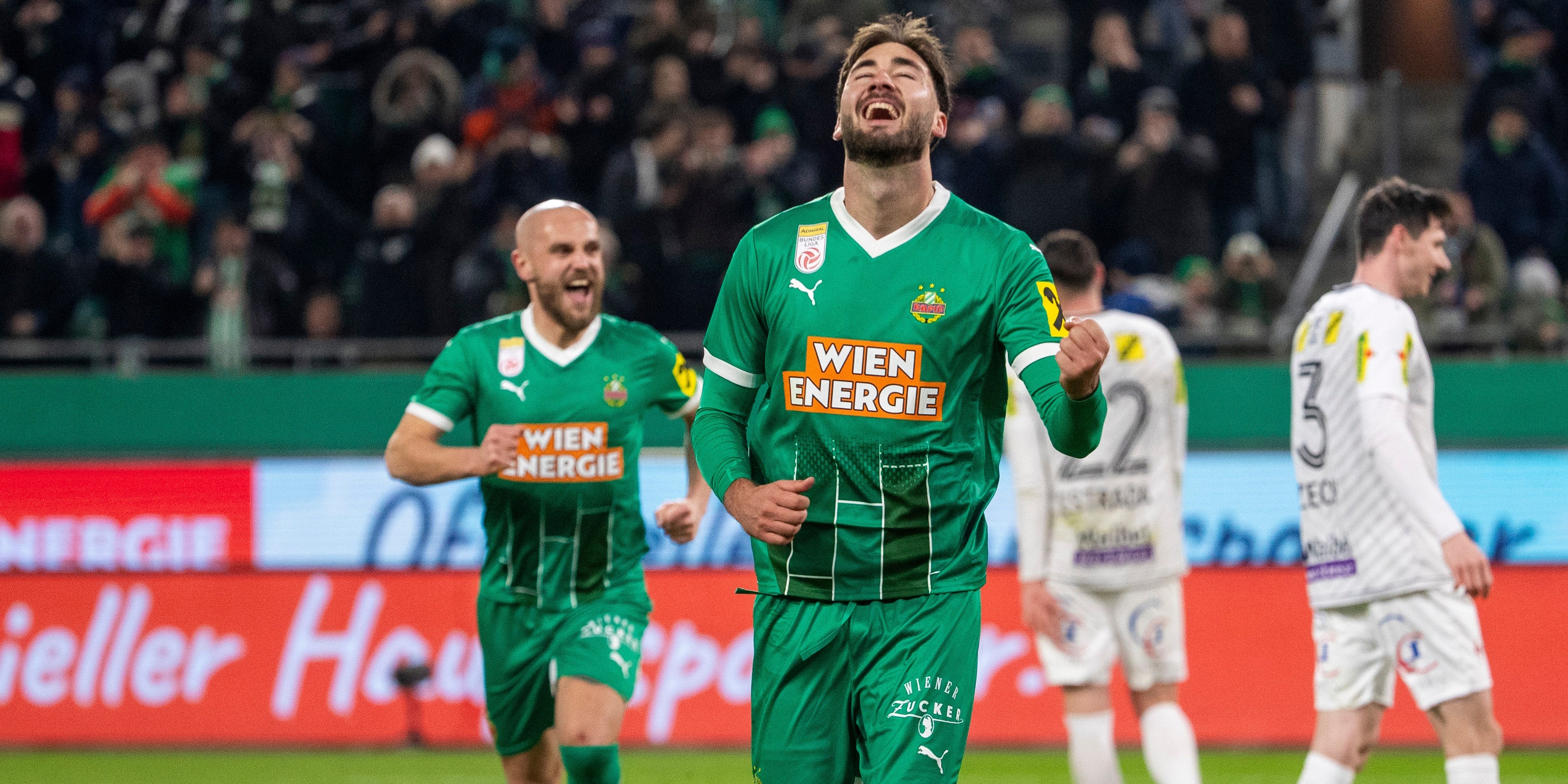 Nenad Cvetkovic brachte die Hütteldorfer vor knapp 17.000 Fans im Allianz Stadion in Führung (8.). Nach der Pause sicherten Isak Jansson per Doppelpack (56., 68.), Dion Beljo per Elfmeter-Nachschuss (78.) und Andrija Radulovic (95.) ihrem Team den ersehnten Dreier sowie den höchsten Saisonerfolg in der Liga. Beide Mannschaften beendeten die Partie nach Platzverweisen gegen Cvetkovic (62.) und Paul-Friedrich Koller (66.) zu zehnt.