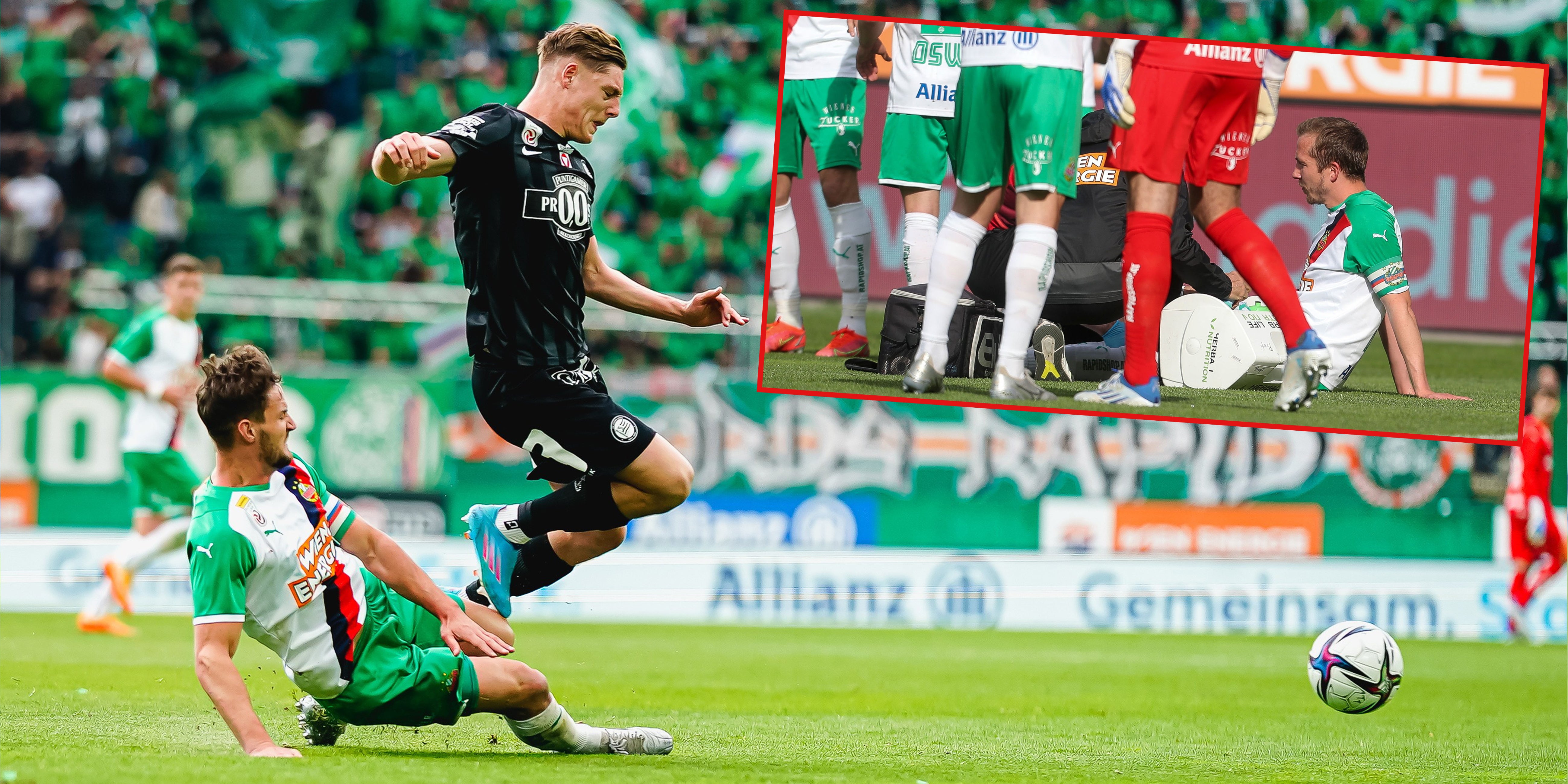 Der Hit zwischen Rapid und Sturm wurde früh von der Verletzung des Hütteldorfer Kapitäns Christopher Dibon überschattet. Am Ende konnte Knasmüllner die Hütteldorfer in der Schlussphase vor einer Niederlage bewahren - 1:1.