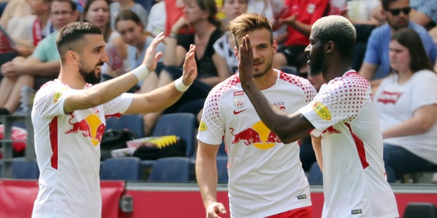 Meister Red Bull Salzburg hat die Generalprobe für das Halbfinal-Hinspiel der Europa League am Donnerstag bei Olympique Marseille erfolgreich gestaltet. Die Salzburger setzten sich am Sonntag in der Fußball-Bundesliga zu Hause gegen SCR Altach letztlich ungefährdet mit 3:1 (1:0) durch. Die Tore erzielten Jerome Onguene (7.), Hannes Wolf (47.) und Andreas Ulmer (96.) bzw. Marco Meilinger (60.).