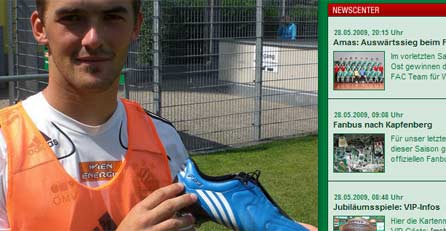 Riesenfreude bei Rapid-Stürmer Jimmy Hoffer. Grund. Ausrüster Adidas überreichte dem 21-jährigen Österreicher den neuen Wunderschuh F50i. Jenes Modell, mit dem Barcelona-Star Lionel Messi im Champions-League-Finale aufgeigte. Hoffer fühlt sich geehrt: „Als erster Spieler des Landes – das kann schon was. Hoffentlich gelingen mir am Sonntag in Kapfenberg damit gleich ein paar Tore!“