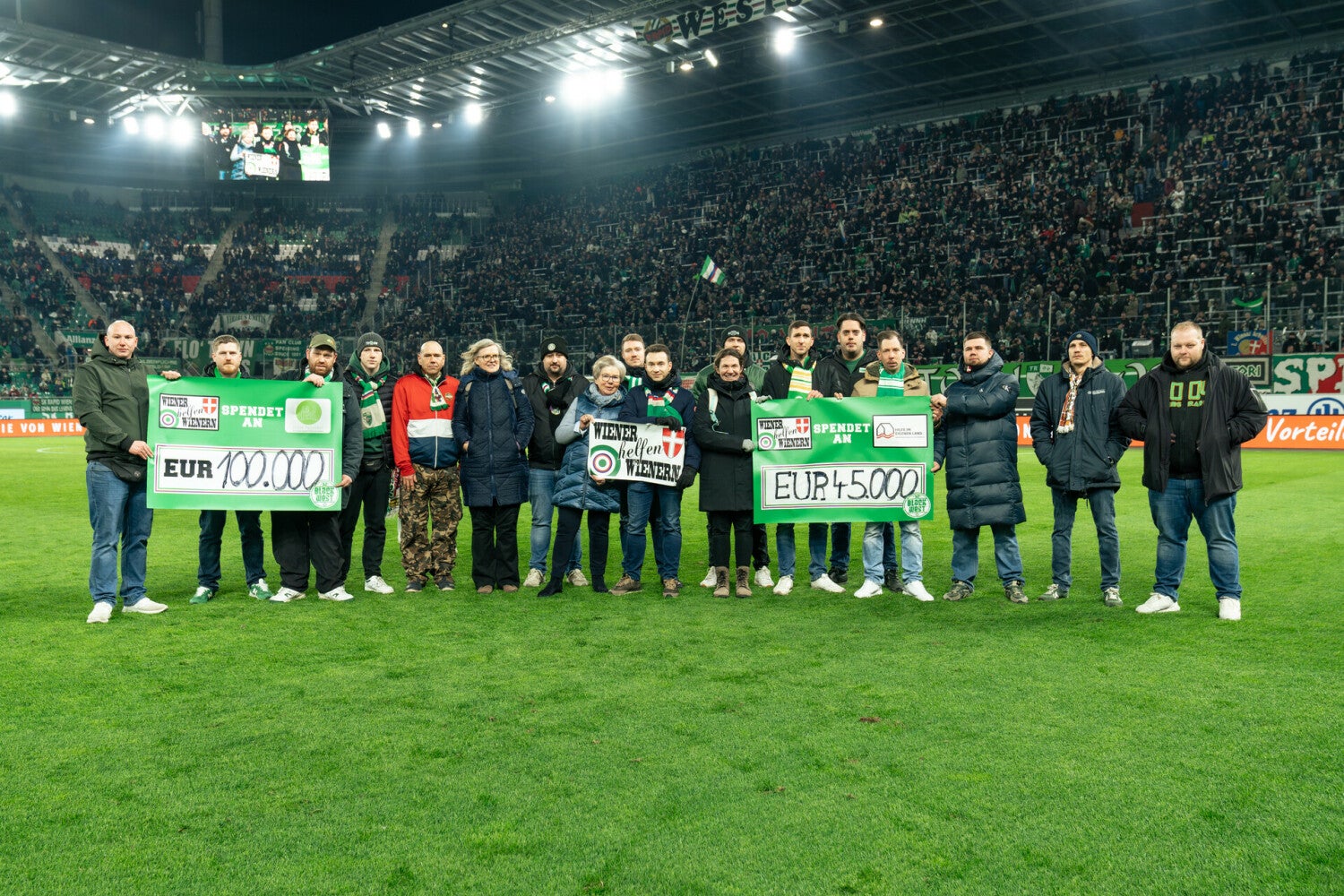 Bereits im Herbst 2024 startete die Spendenaktion bei unserem Heimspiel gegen Hartberg, anschließend wurde auch bei den darauffolgenden Heimspielen und verschiedenen Veranstaltungen gesammelt, ehe vergangene Woche ein erfolgreicher Spendenabend im Casino Baumgarten mit sehr vielen Rapid-Fans stattfand. An diesem Abend wurden u.a. auch 10.000 Euro durch die Mannschaft sowie das Trainer- und Betreuerteam des SK Rapid gespendet.