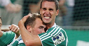 Hoffer nach seinem Triplepack. Auch Sturm-Kollege Nikica Jelavic hat sich