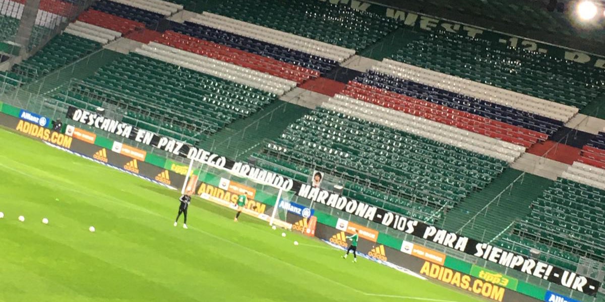 Das Duell der beiden Erzrivalen Rapid und Austria muss vor leeren Zuschauerrängen stattfinden. Die Trauer vom Ableben der argentinischen Fußball-Legende Diego Armando Maradona zieht bis nach Hütteldorf. Im Vorfeld des 331. Wiener Derbys präsentieren die Rapid-Anhänger im Form eines Transparents ihr Mitgefühl.