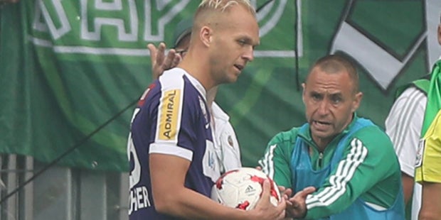 Rapid-Ikone Steffen Hofmann verhöhnte Raphael Holzhauser als Heulsuse, weil dieser weiterhin mit der Ausführung der Ecke zögerte. Mittendrin: Ein Ordner, der laut Austria "verbal aggressiv" wurde. Und das sorgt nun für einen handfesten Skandal. Wie sich herausgestellt hat, ist der Mann im weißen Shirt ein Ex-Platzstürmer!