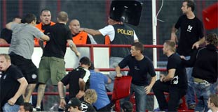 Ausschreitungen verwickelt waren. Da der Schiedsrichter das Spiel bereits