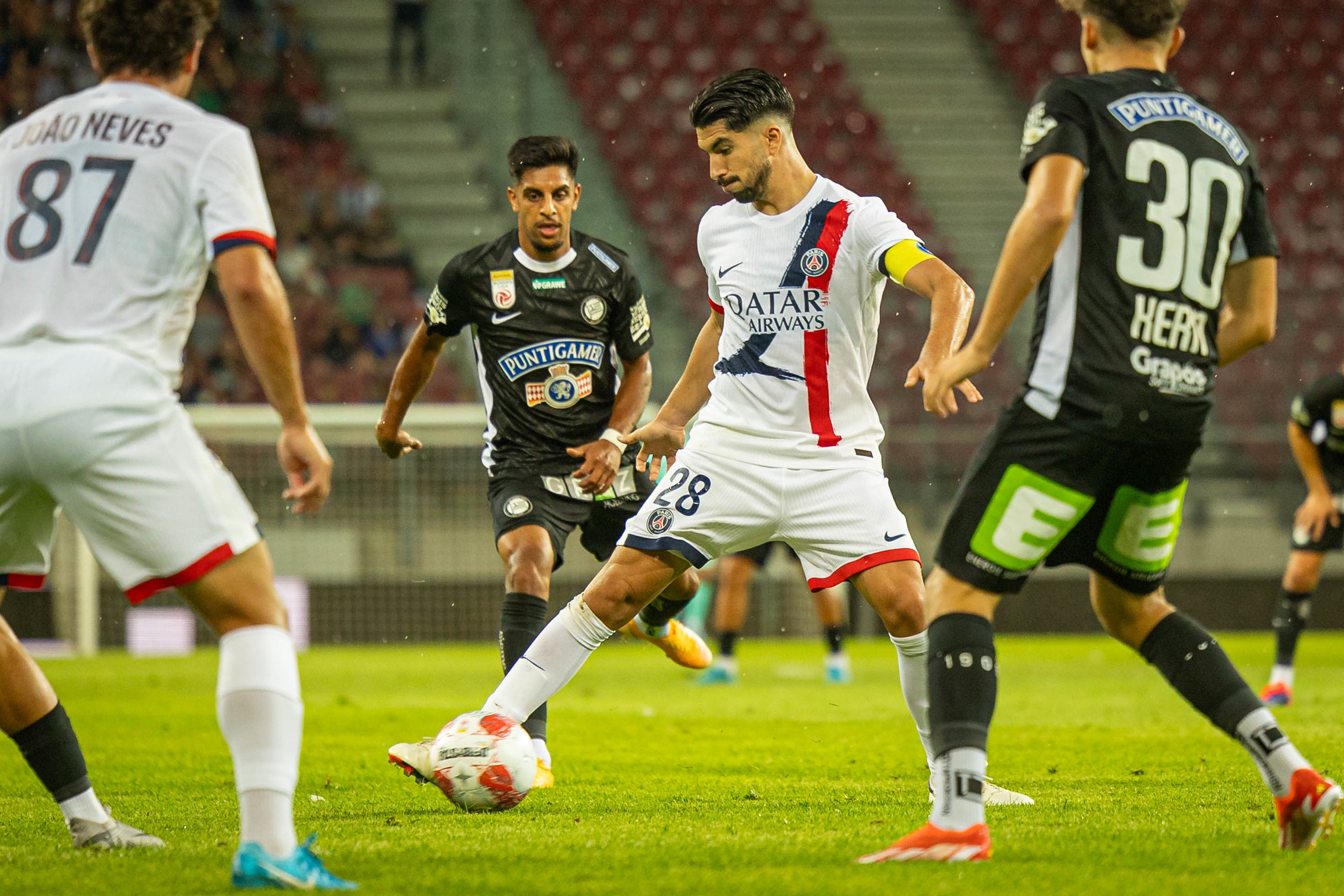 Sturm kam dank Camara heran. Der Stürmer profitierte beim 1:2 (15.) von einem schweren Patzer des 17-jährigen Verteidigers Younes El-Hannach. Der Ausgleich gelang Kiteishvili mit einem sehenswerten Schuss von der Sechzehnergrenze ins lange Eck - 2:2 (43.). Zur Pause tauschte Sturm alle Feldspieler, PSG-Trainer Luis Enrique ging etwas zurückhaltender mit Wechseln um. Tore bekamen die Zuschauer bei im Finish regnerischen Bedingungen nicht mehr zu sehen, dafür den einen oder anderen PSG-Star wie Kolo Muani, Soler, Marco Asensio und Warren Zaïre-Emery.