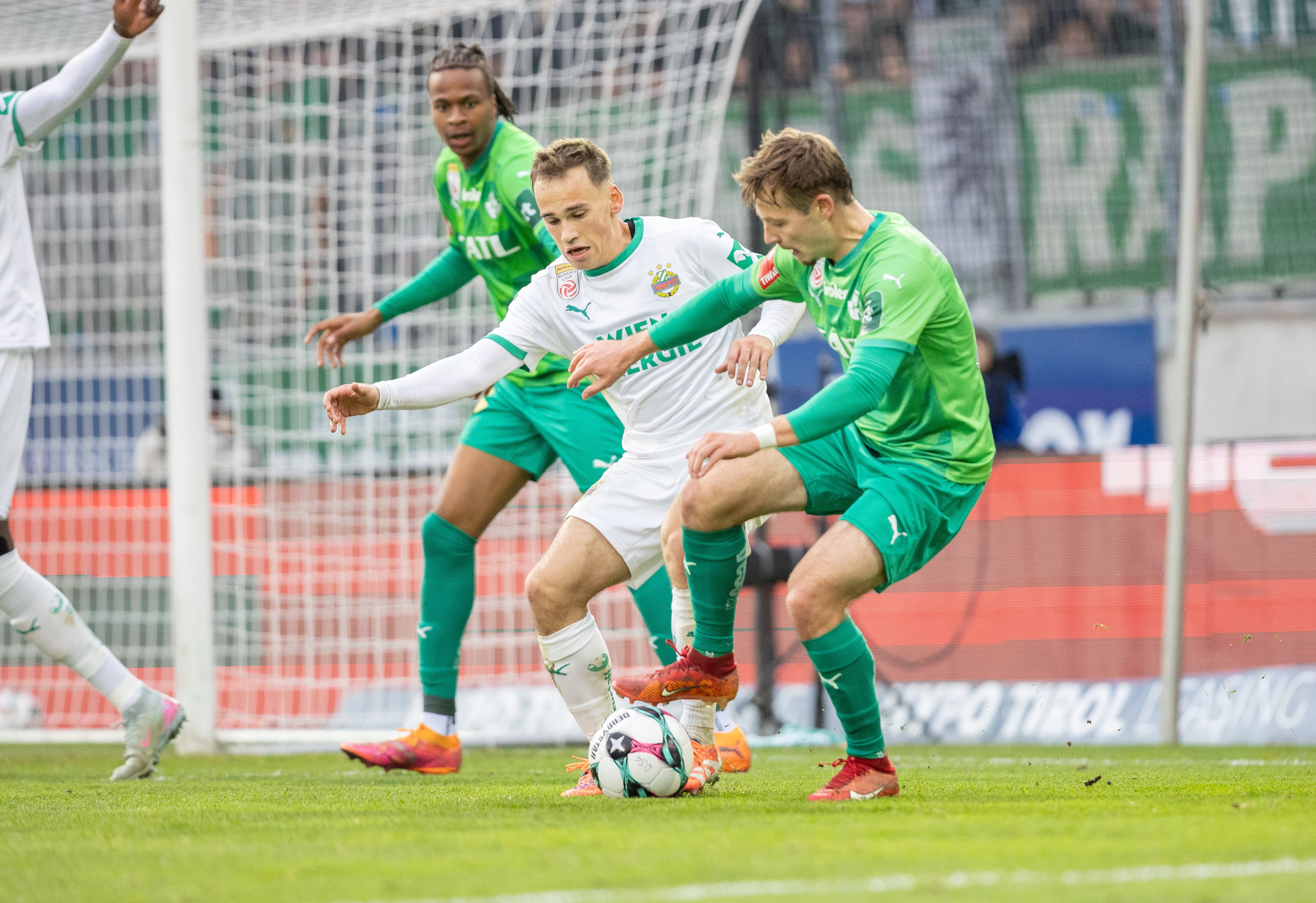 Rapid quält sich mit einem 1:1 in Tirol in die Länderspielpause. Nach einem frühen Rückstand durch Baden-Frederiksen (7.) gelang Kara noch der schmeichelhafte Ausgleich (73.). Das zwischenzeitliche 2:0 durch Böckle zählte nach VAR-Studium nicht.