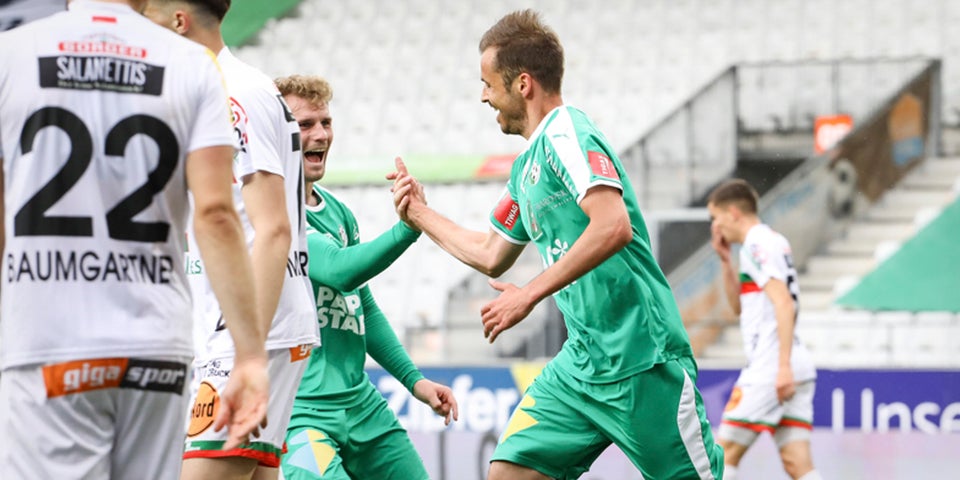 Die Tiroler gingen durch Zan Rogelj (13.) in Führung. Dank der Treffer von Dejan Joveljic (62., 69.) schien der WAC das Match gedreht zu haben, dann aber schlug Benjamin Pranter zu (73.) und sorgte für den Ausgleich. Der Einwechselspieler vergab in der 92. Minute noch einen Elfmeter.