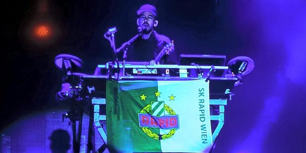Das absolute Highlight am Samstag waren die Rocker von Linkin Park. Die US-Amerikaner konnten dabei nicht nur musikalisch voll überzeugen, sondern zeigten auch Sympathien für den heimischen Fußball. Mike Shinoda holte zu Beginn des Gigs eine Rapid-Fahne auf die Bühne, befestigte sie dort und ließ sie auch den ganzen Auftritt über hängen. Den heimischen Fans hat es gefallen und auch der SK Rapid postete die überraschende Aktion der Rocker stolz auf Facebook.