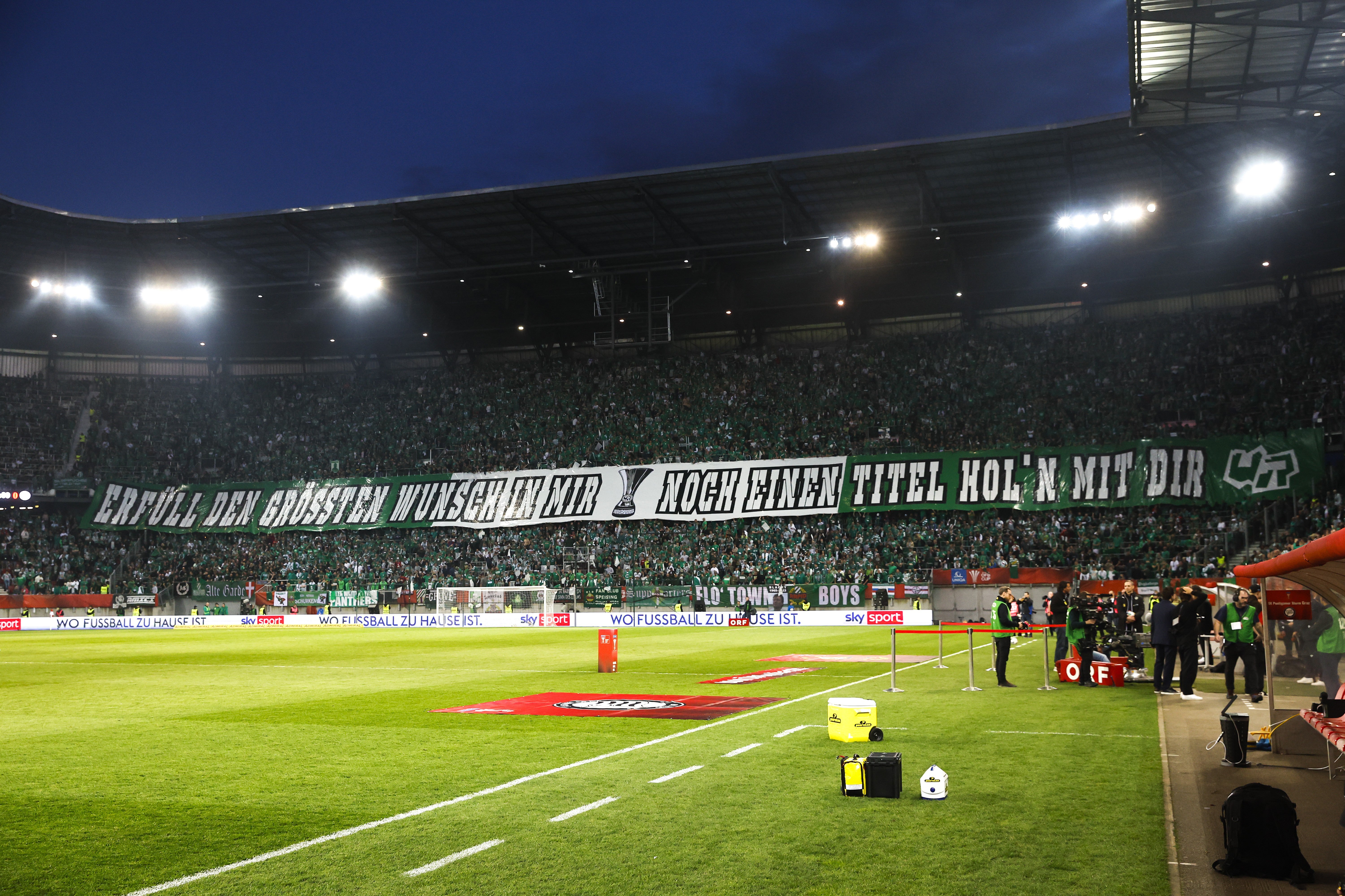 In Klagenfurt setzen die Fans der Rapidler schon ein klares Zeichen, wer den Cup-Titel 2023 holen soll.