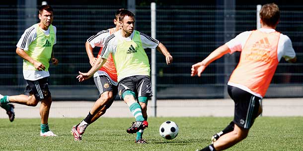 Schöttel spielt gegen den Meister voll auf Angriff. Im Training spannte er Deni Alar mit Atdhe Nuhiu zusammen. Doppelspitze!