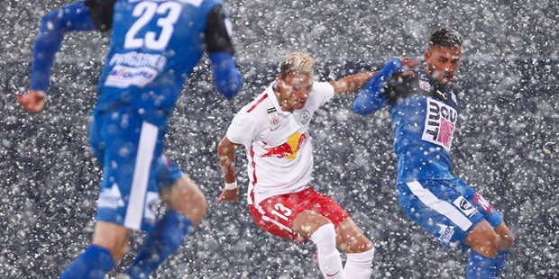 Die Fußball-Erste-Liga-Partie zwischen Liefering und Wiener Neustadt ist am Dienstag abgebrochen worden. Der Grund war Mitte April ein kurioser: Starker Schneefall machte das Spielfeld im DAS.GOLDBERG Stadion in Grödig unbespielbar. Schiedsrichter Robert Schörgenhofer hatte die Partie beim Stand von 0:0 nach rund 28 Minuten zuerst unter-, und schließlich abgebrochen.