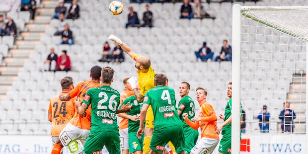 Hartberg suchte die Vorentscheidung. Zehn Minuten später war Oswald gegen Rep allerdings am Posten, zuvor rettete bei einem Schuss von Tomas Ostrak Aluminium (64.), und im Finish knallte Hartbergs Bakary Nimaga einen Köpfler an die Latte (87.). Insgesamt kam von den Hausherren zu wenig, um noch einen Punkt mitzunehmen.