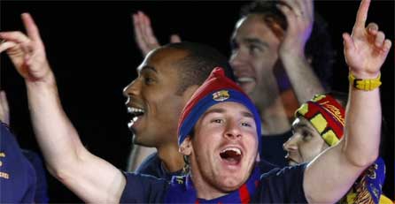Nach dem erfolgreichen Tripple (Meisterschaft, Cup, Champions League) stieg Messi bei einer Feier mit Fans sturzbetrunken aufs Podium lallte etwas von Titelverteidigung und machte dann schnell wieder einen Abgang. Den Fans gefiel’s trotzdem – sie feierten ihren Helden frenetisch.