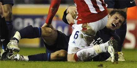Arsenal London musste den 3:1-Auswärtssieg bei Stoke City teuer bezahlen. Aaron Ramsey, 19-jähriger Mittelfeldspieler, musste nach einem Horror-Foul von Stokes Ryan Shawcross mit einer Sauerstoff-Maske vom Platz getragen und ins Krankenhaus gebracht werden. Erinnerungen an das böse Foul an Arsenals Eduardo, der fast ein Jahr ausfiel, wurden wach.
