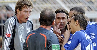 Hat er, oder hat er nicht? Nach dem emotionsgeladenen Derby zwischen Schalke und Dortmund soll Marcelo Bordon den Referee eine "Hure" genannt haben.
