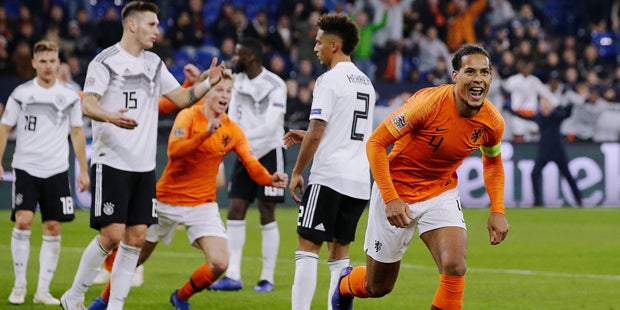 Der aufgrund des Spielverlaufs überraschende Punktegewinn beförderte "Oranje" an Weltmeister Frankreich vorbei auf Platz eins. Quincy Promes (85.) und der aufgerückte Kapitän Virgil van Dijk (91.) ließen die Niederländer noch jubeln. Die nach ihrem WM-Debakel auch in der Nations League wenig erfolgsverwöhnten Deutschen hatten durch Timo Werner (9.) und Leroy Sane (20.) rasch zugeschlagen.