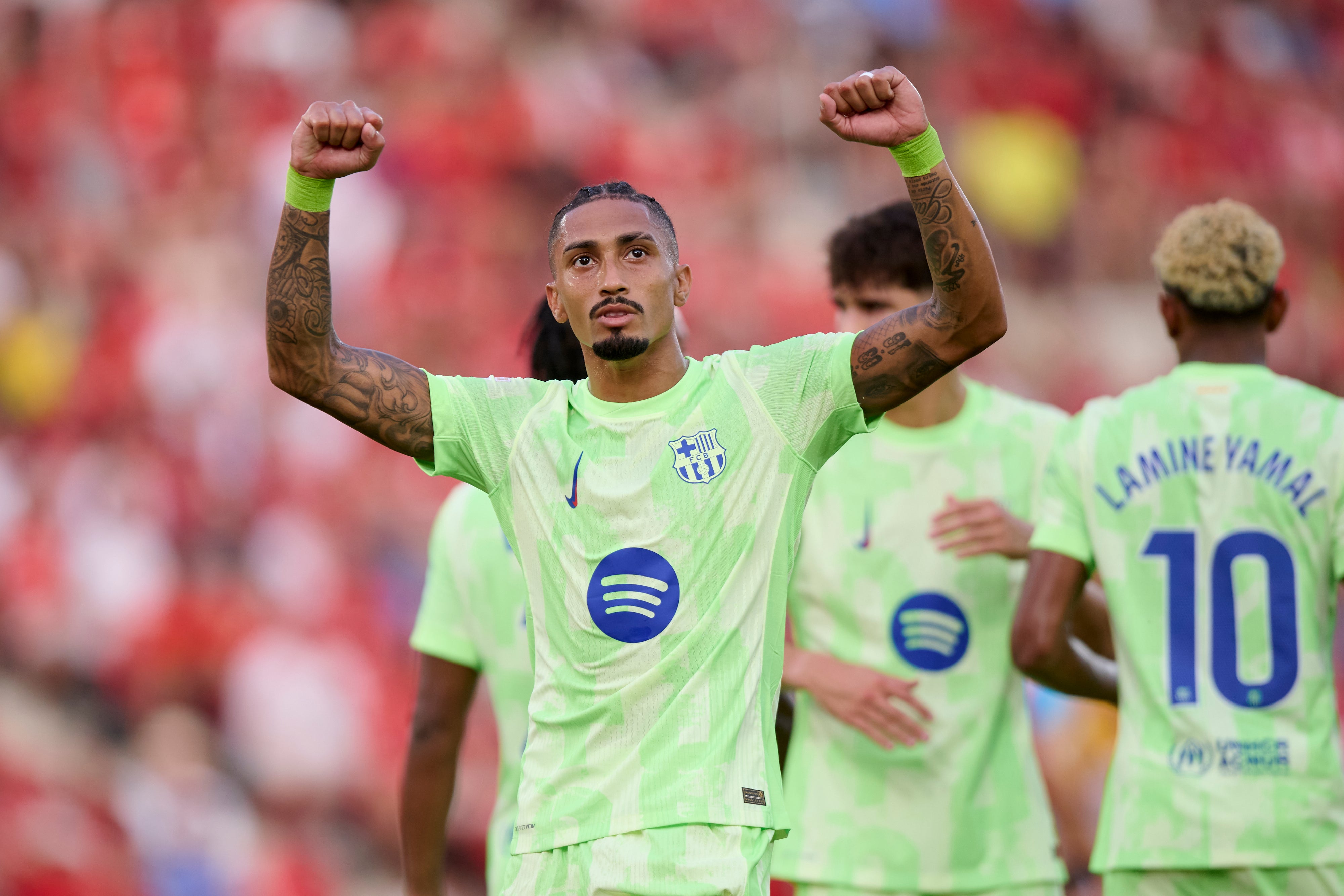 Raphinha (7.) und Ferran Torres (23.) trafen am Samstagabend schon in der ersten halben Stunde für die Katalanen, bei Mallorca sahen danach zwei Profis bis zur Pause die Rote Karte. Barcelona ließ es in der zweiten Halbzeit ruhiger angehen, Lamine Yamal (94.) traf erst tief in der Nachspielzeit zum Endstand.