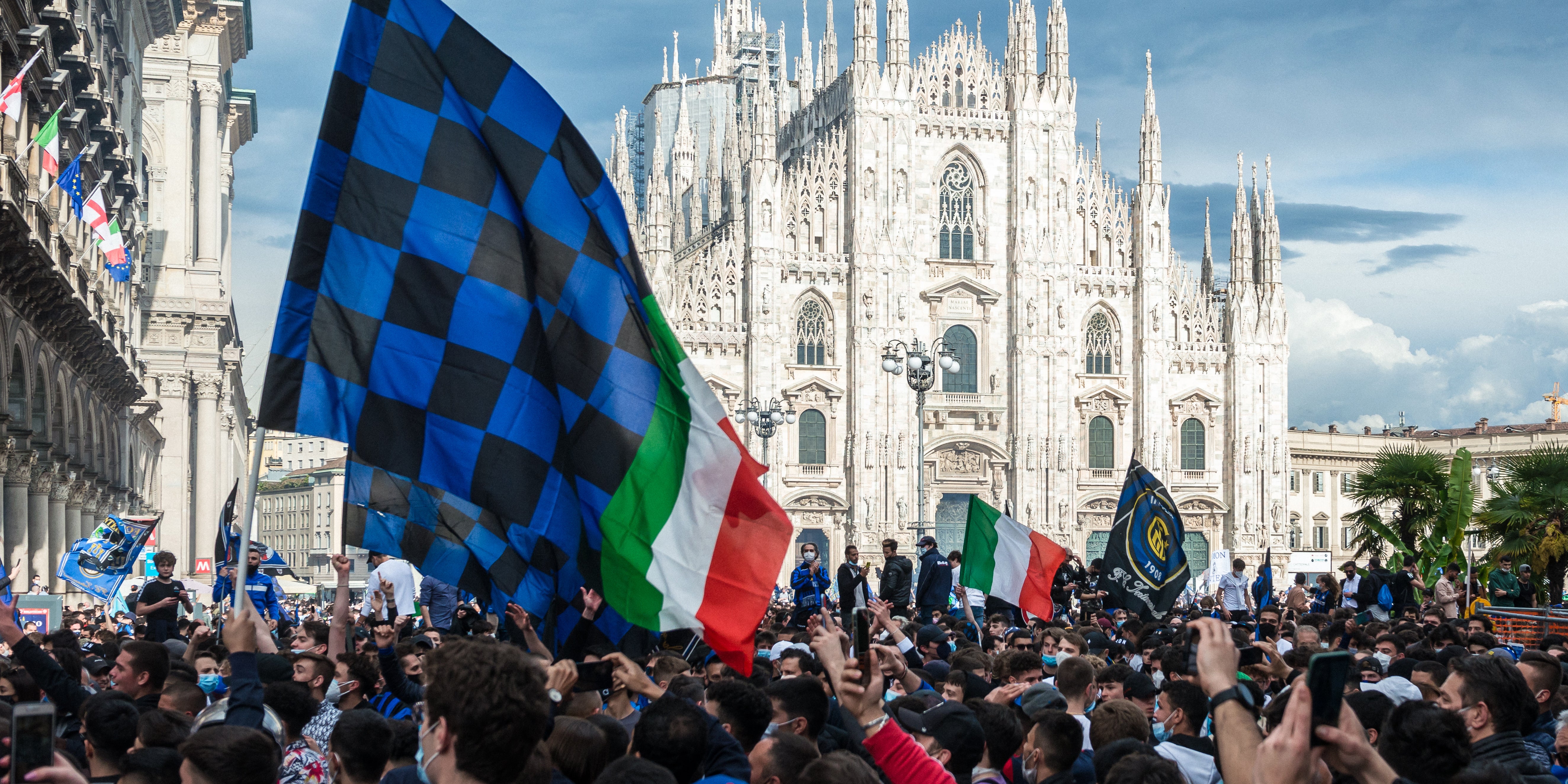 Auf dem Domplatz skandierten begeisterte Fans Chöre für die "Inter-Helden". Tifosi warfen schwarzblaue Rauchbomben, Konfetti regneten auf die Menschenmenge. Circa 100 Fans kletterten auf eine Statue inmitten des Domplatzes und rollten eine italienische Fahne auf einem der beiden Löwen zu Füßen des Monuments aus. Die Fans trugen zwar Mundschutz, hielten jedoch trotz des Appells des Klubs auf sichere Feierlichkeiten keinen Abstand.
