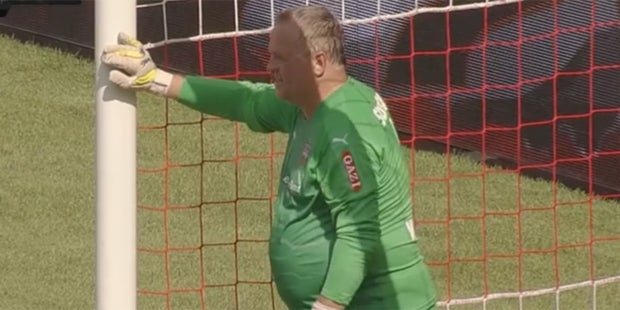 Bei seiner Rückkehr ins Rampenlicht zeigte sich Wohlfahrt gut gelaunt und mit einem Bäuchlein. Trotzdem zeigte der Kärntner eine echte Glanzparade gegen den ehemaligen Stürmerstar Kevin Kuranyi.