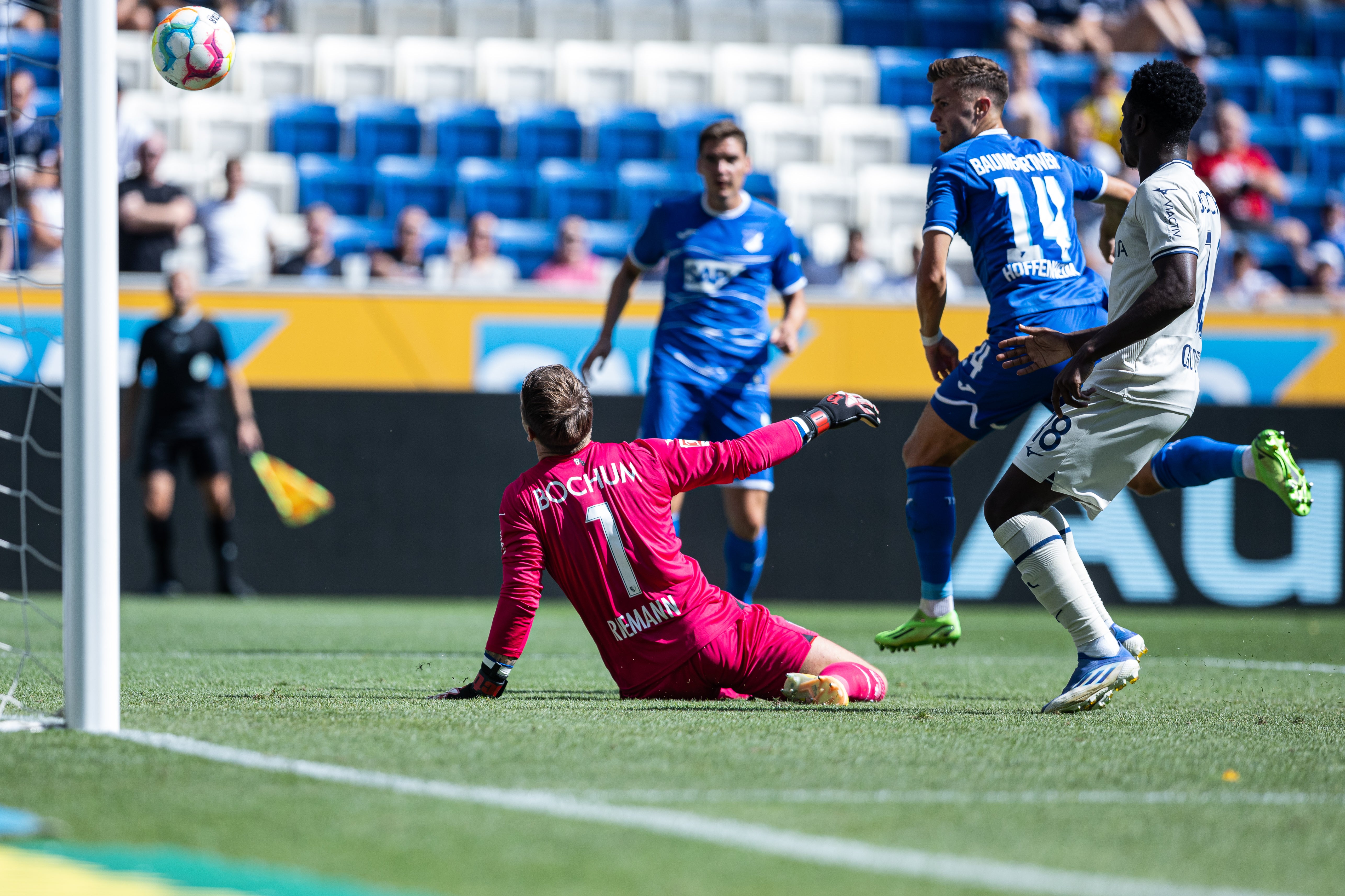 Die TSG Hoffenheim feierte nach 0:2-Rückstand einen 3:2 (2:2)-Heimsieg über Bochum. Die Gäste starteten fulminant, Simon Zoller erzielte einen Doppelpack (10./13.) innerhalb von 2:20 Minuten. Diese währte allerdings nicht lange. Nationalspieler Baumgartner erzielte per Abstauber den Anschlusstreffer (14.), Ozan Kabak glich neun Minuten später aus. Nach einem Foul an Baumgartner verschoss Andrej Kramaric den ersten Strafstoß der Saison (59.). Den Siegtreffer erzielte der Ex-Salzburger Munas Dabbur (88.).