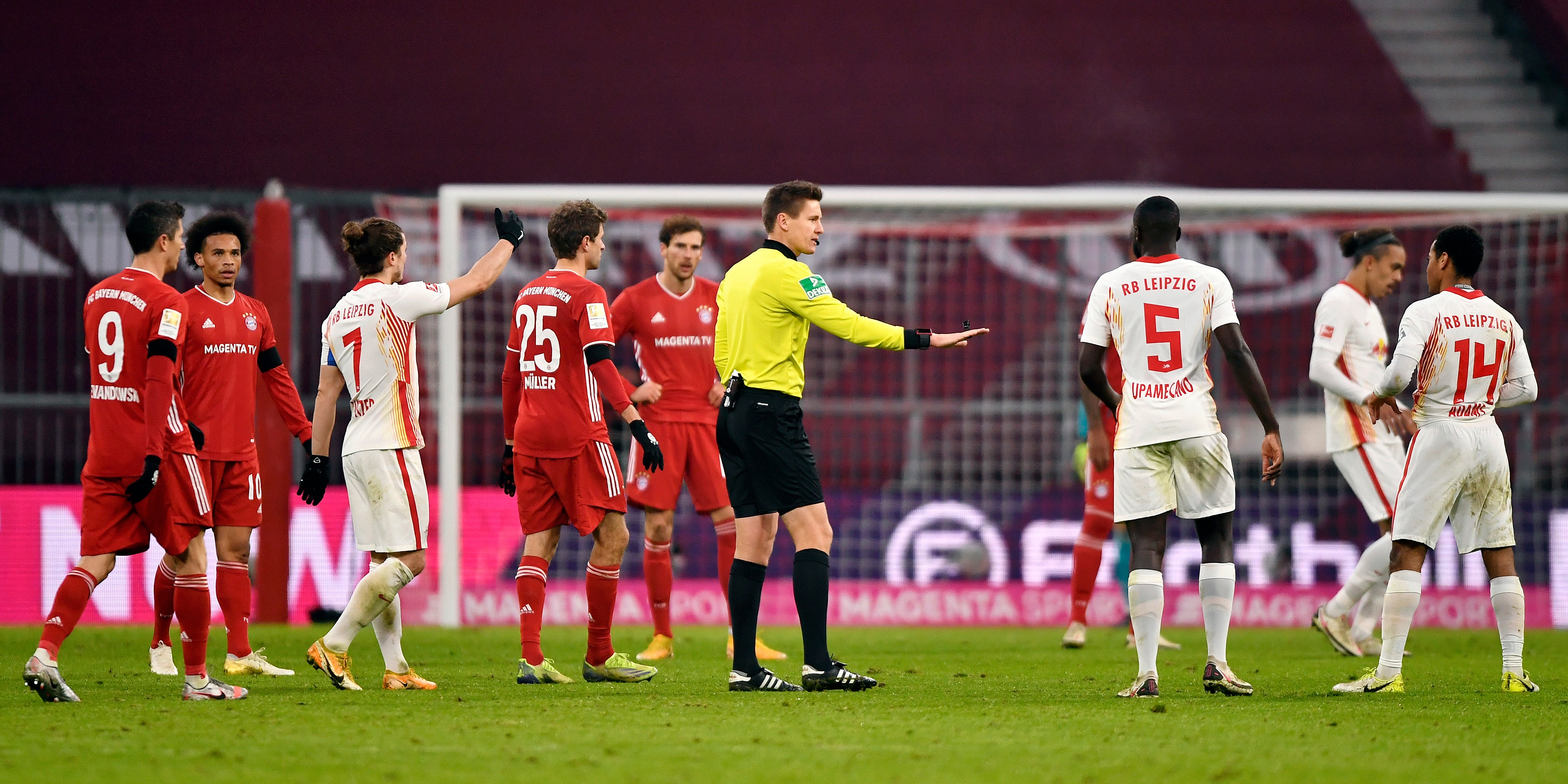 Der FC Bayern, bei dem David Alaba als Linksverteidiger agierte, hatte in der 2. Minute bei einem Lattenschuss von RB-Kapitän Marcel Sabitzer Glück. In der 19. Minute folgte das 1:0 der Gäste durch Christopher Nkunku. Den Hausherren gelang dank eines Doppelschlags von Jamal Musiala (30.) und Thomas Müller (34.) die vorläufige Wende, doch Justin Kluivert glich bereits in der 36. Minute wieder aus.
