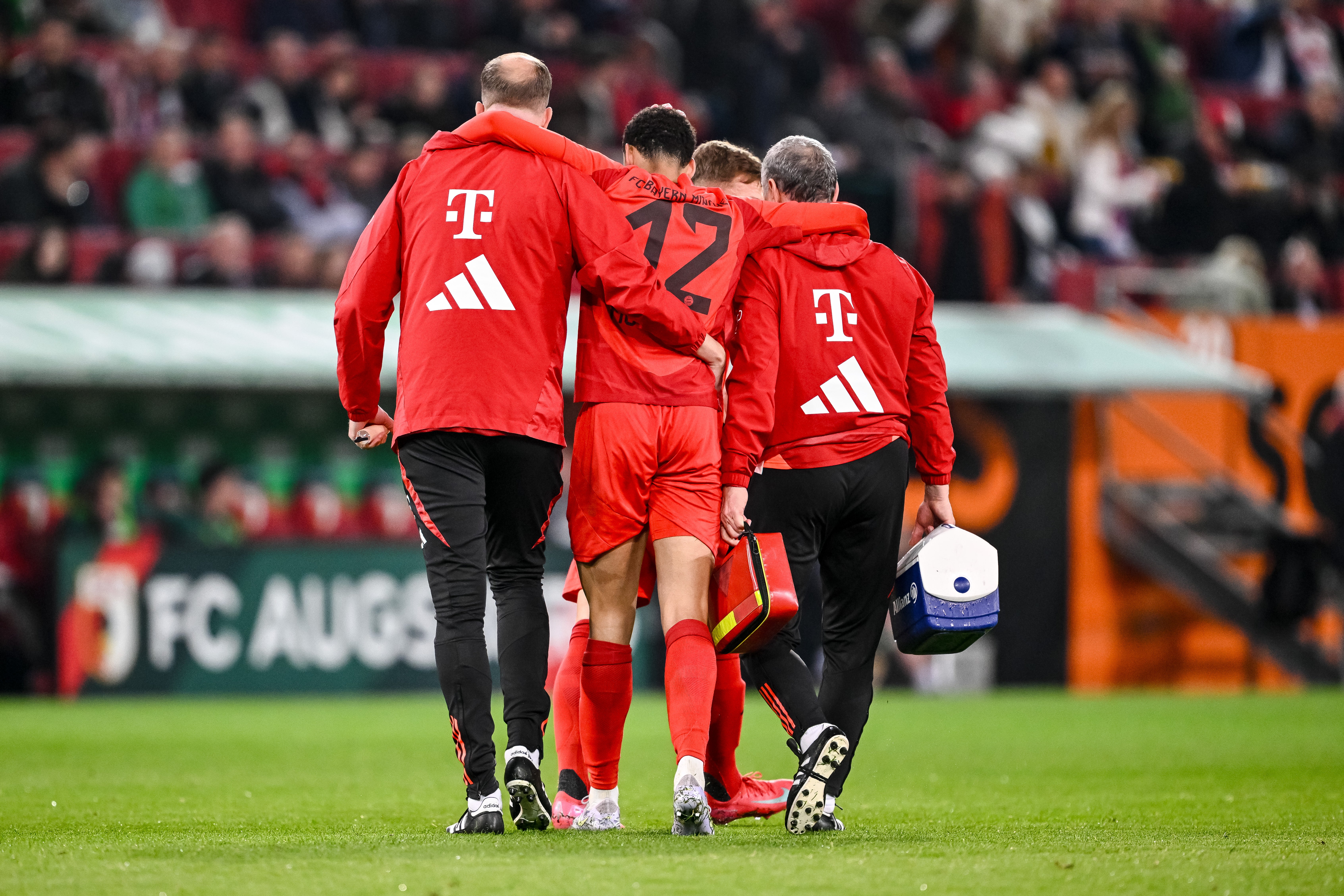 Der deutsche Fußball-Rekordmeister Bayern München muss im Saisonendspurt mehrere Wochen auf Jungstar Jamal Musiala verzichten. Der 22-jährige Offensivspieler zog sich am Freitag beim 3:1-Ligasieg in Augsburg einen Muskelbündelriss im linken hinteren Oberschenkel zu. Das gaben die Bayern am Samstag nach Untersuchungen durch die medizinische Abteilung bekannt. Die Saison könnte für Musiala dadurch vorzeitig zu Ende sein.