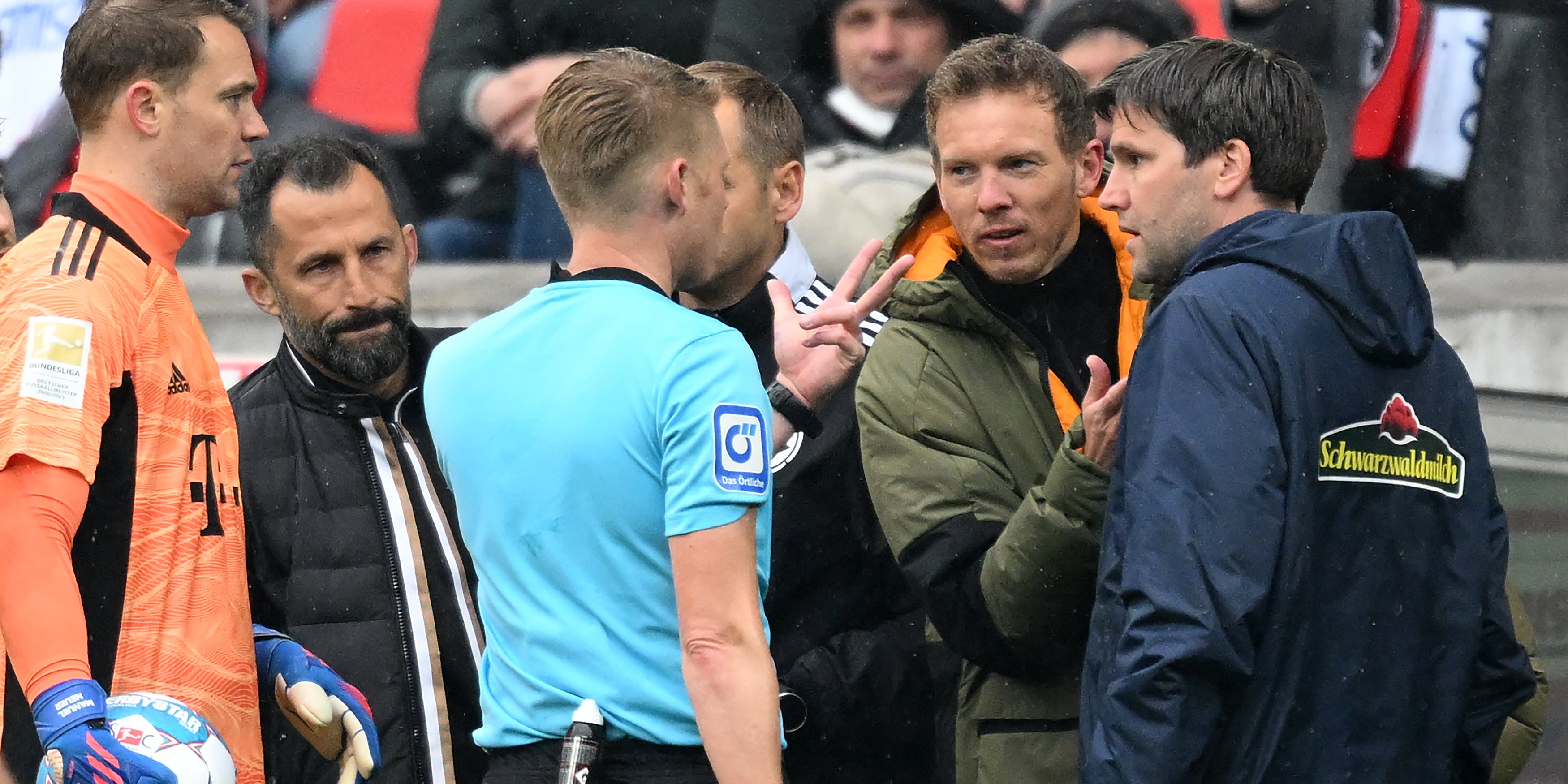 Die Verantwortung für einen regelkonformen Wechsel liege beim Schiedsrichter-Team, betonte Zwayer. "In der Praxis ist es in solchen Fällen so, dass die Aufgabe dem vierten Offiziellen überlassen wird." Dieser sorge dafür, dass der auszuwechselnde Spieler das Spielfeld verlässt und lasse den neuen Spieler auf den Platz.