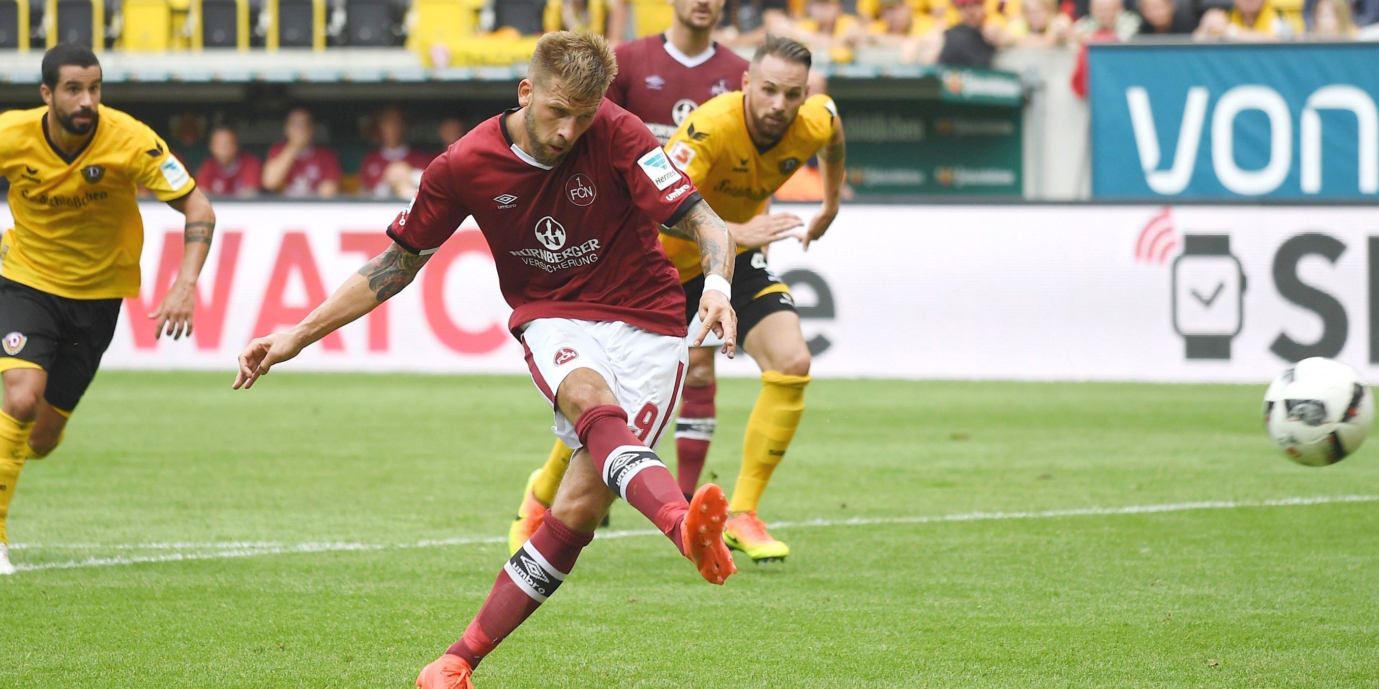 Der 1. FC Nürnberg ist zum Saisonauftakt in der zweiten deutschen Bundesliga knapp am Sieg vorbeigeschrammt. Nach einem umstrittenen Foulelfmeter des Österreichers Guido Burgstaller (45.) führte der Aufstiegs-Aspirant in Dresden.