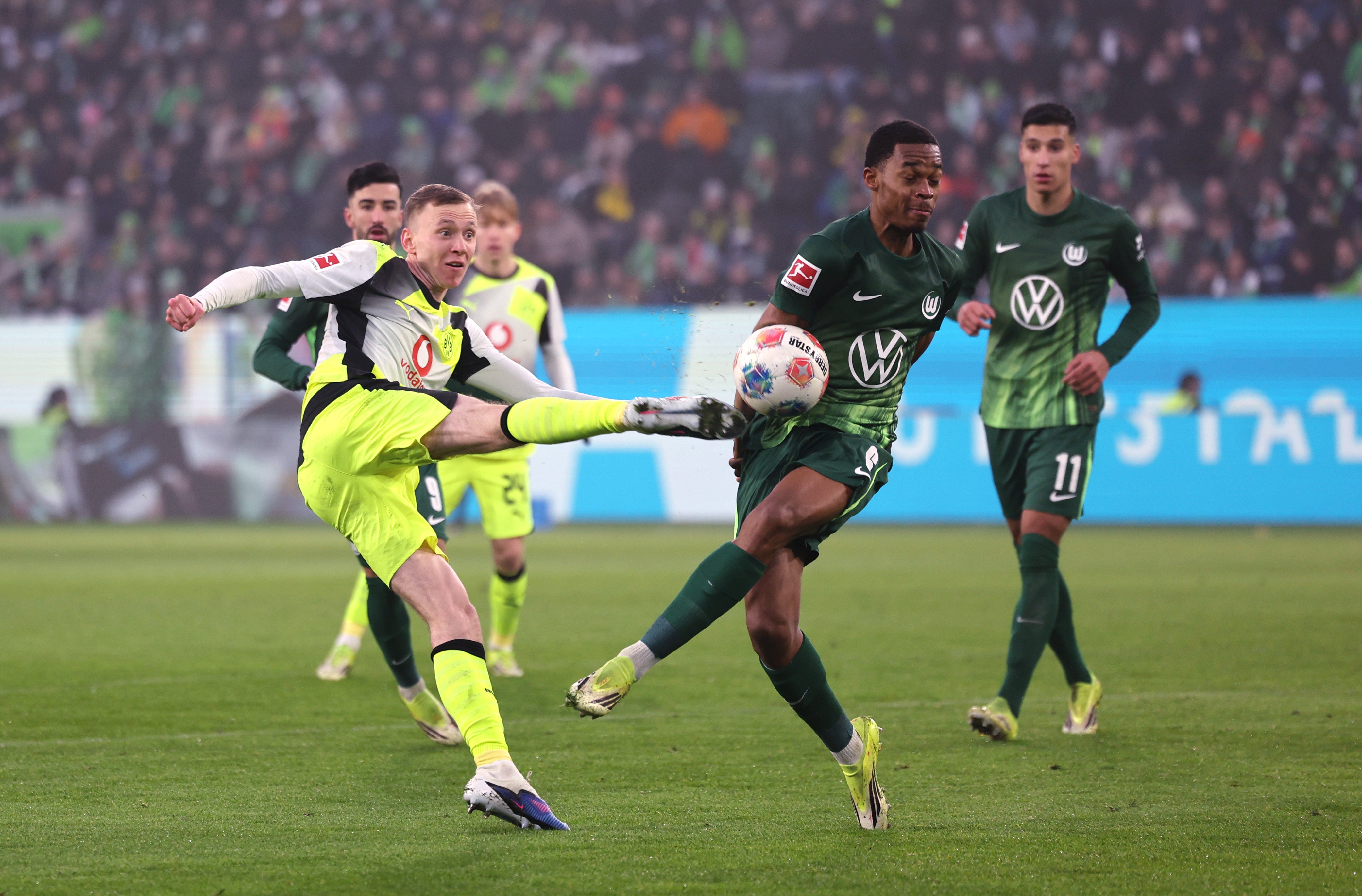 ÖFB-Teamspieler Patrick Wimmer fehlte Wolfsburg wegen muskulärer Probleme. Laut Trainer Daniel Bauer handle es sich aber "definitiv um keine schlimme Verletzung". Für Dortmund-Legionär Marcel Sabitzer kam die Partie nach seiner Wadenblessur noch zu früh, seine Kollegen gingen aber durch einen Kopfball von Julian Brandt nach einem Corner in Führung (39.). Konstantinos Koulierakis schlug ebenfalls per Kopf nach einer Freistoßflanke zurück (52.). Im Finish landete der Ball etwas ungewollt vor den Beinen von Guirassy. Der bis dahin fast unsichtbare Mittelstürmer bescherte dem BVB den fünften Ligasieg in Serie.