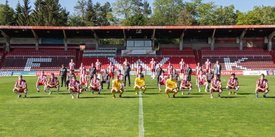 Ein Verein in der 3. deutschen Liga möchte mit einem Corona-Mannschaftsfoto ein Zeichen setzen.