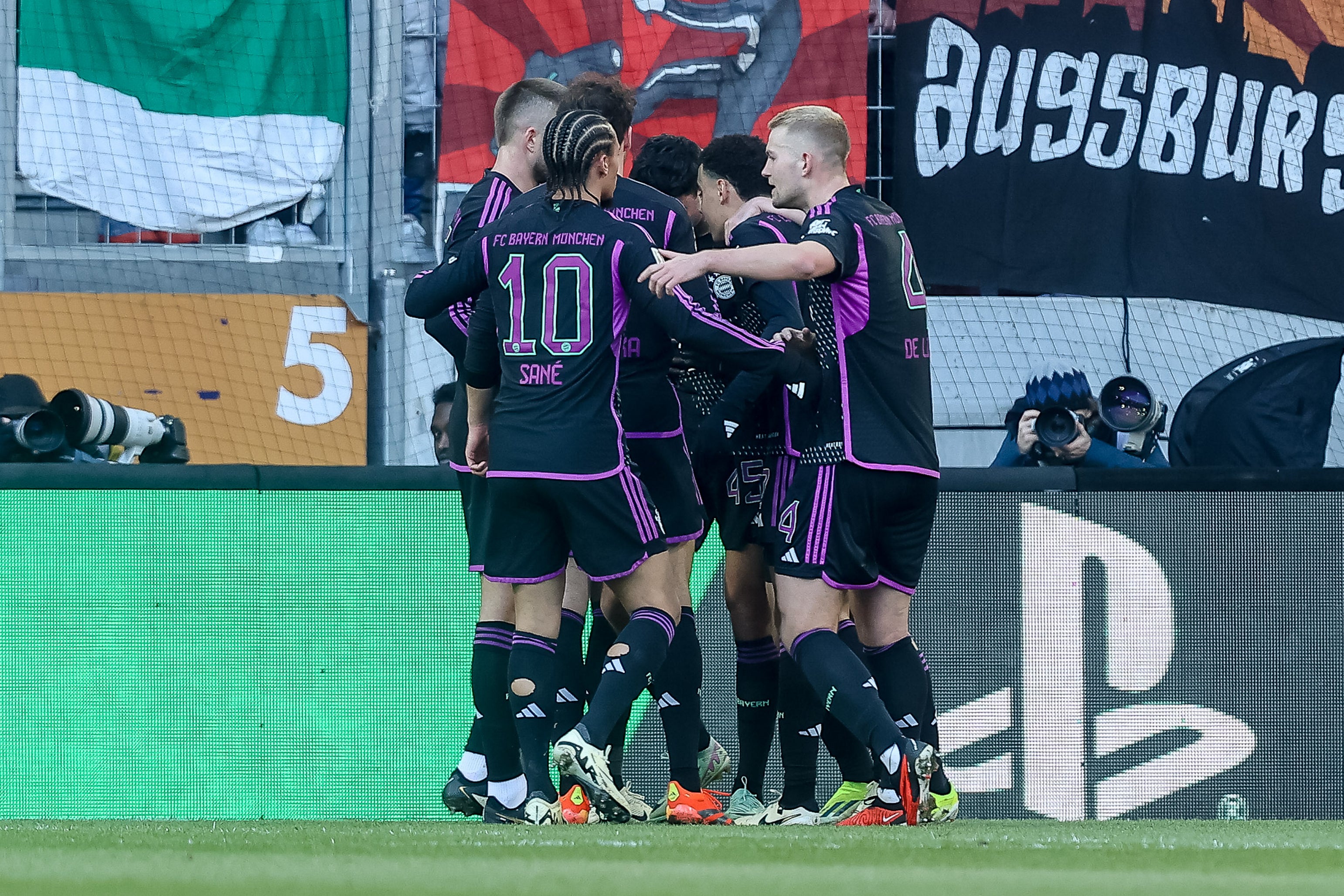 Die Bayern traten die kurze Reise nach Augsburg stark ersatzgeschwächt an. Neben dem an der Wade verletzten ÖFB-Legionär Konrad Laimer fehlten beim Rekordmeister sieben weitere Profis. Linksfuß Raphael Guerreiro musste anstelle von Laimer als Rechtsverteidiger ran. Im Spiel begannen die Münchner fehlerhaft und hatten zudem Glück, dass Elvis Rexhbecaj bei seinem Treffer knapp im Abseits stand (12.). Fortlaufend steigerten sich die Bayern und gingen durch Aleksandar Pavlovic per Kopf in Führung (23.).