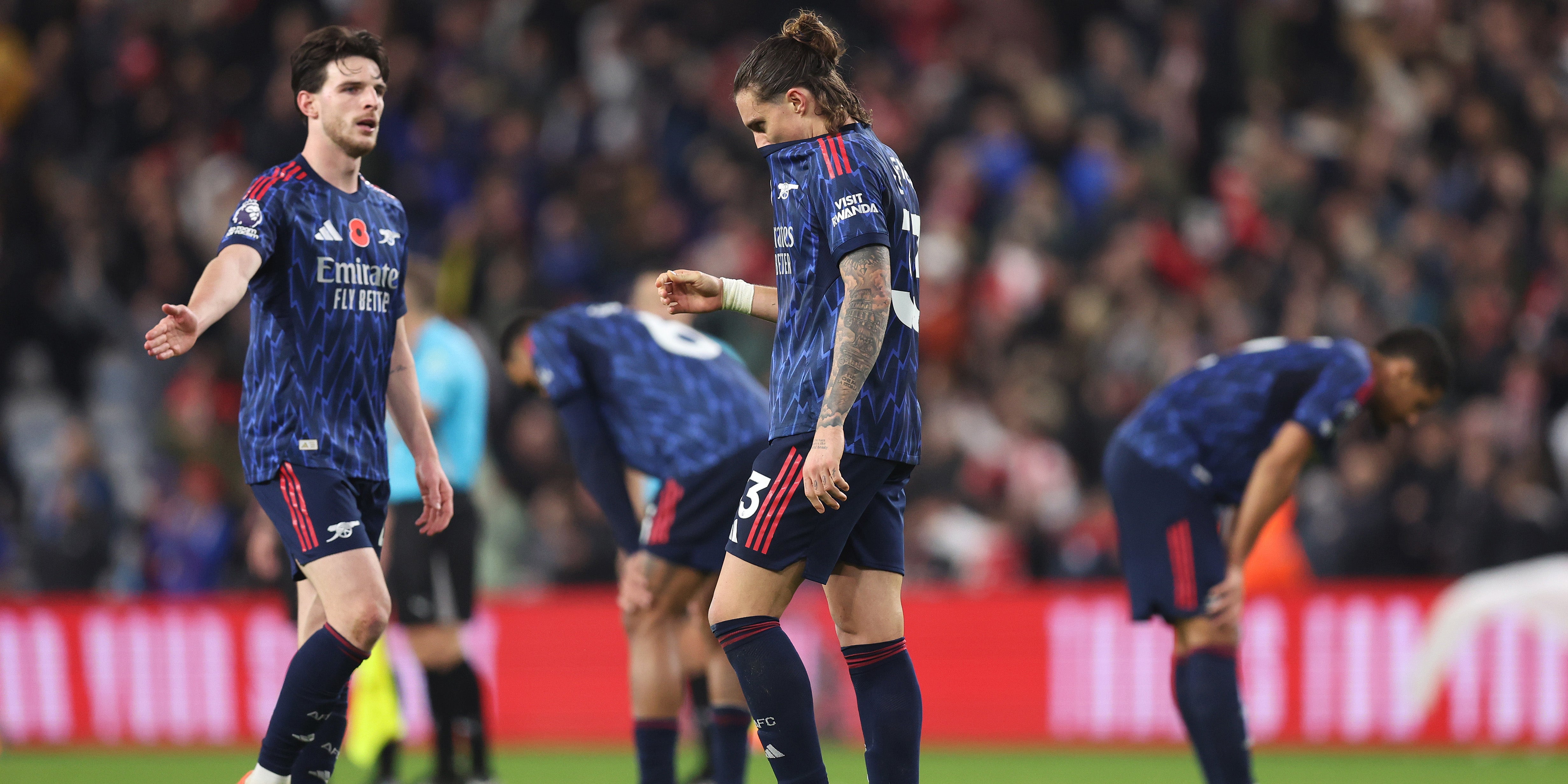 Die "Gunners" führten dank Treffer von Bukayo Saka (44.) und Leandro Trossard (74.) bei einem Gegentor von Dan Ballard (36.) lange, kassierten aber durch Brian Brobbey (94.) noch den Ausgleich und verpassten damit ihren elften Pflichtspielerfolg en suite. Der Zweite Manchester City kann am Sonntag mit einem Heimsieg gegen Liverpool auf vier Punkte herankommen.