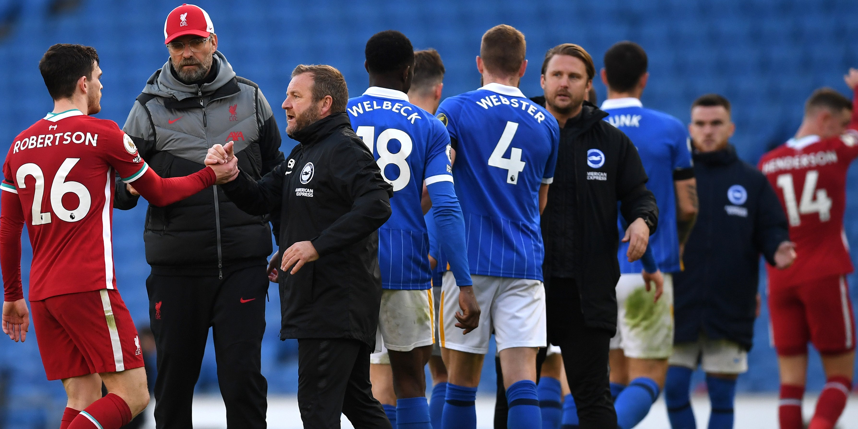 Drei Tage nach der 0:2-Heimpleite in der Champions League gegen Atalanta Bergamo war Liverpool in Brighton über weite Strecken überlegen, tat sich offensiv aber schwer. Diogo Jota brachte die Gäste in Führung (60.), zudem wurden zwei Treffer von Mohamed Salah (34.) und Sadio Mane (84.) nach Entscheidung des Videoschiedsrichters wegen Abseitsposition nicht gegeben. Die Klopp-Elf hatte allerdings auch Glück, als Neal Maupay den ersten Foulelfmeter für Brighton rechts neben das Tor schoss (20.).