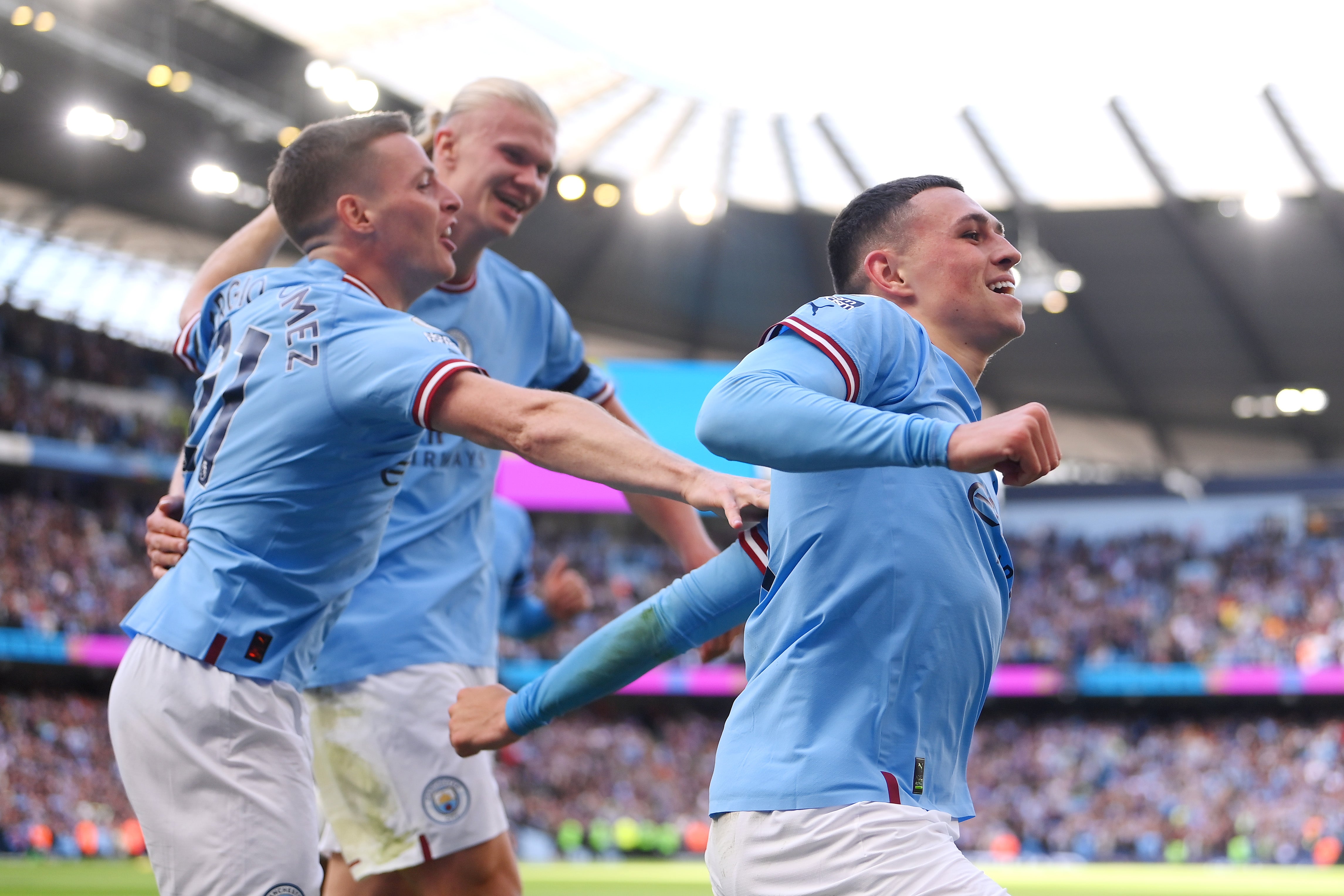 Vor allem in der ersten Hälfte diktierte City die Partie nach Belieben. Haaland, der außerdem zwei Assists für Foden leistete, hat nun in drei Premier-League-Heimspielen in Folge einen Triplepack erzielt und hält nach elf Partien für das Team von Pep Guardiola bei 17 Treffern. Der 22-jährige Norweger steht nach acht Liga-Matches bereits bei 14 Toren. Das hat vor ihm noch keiner geschafft.