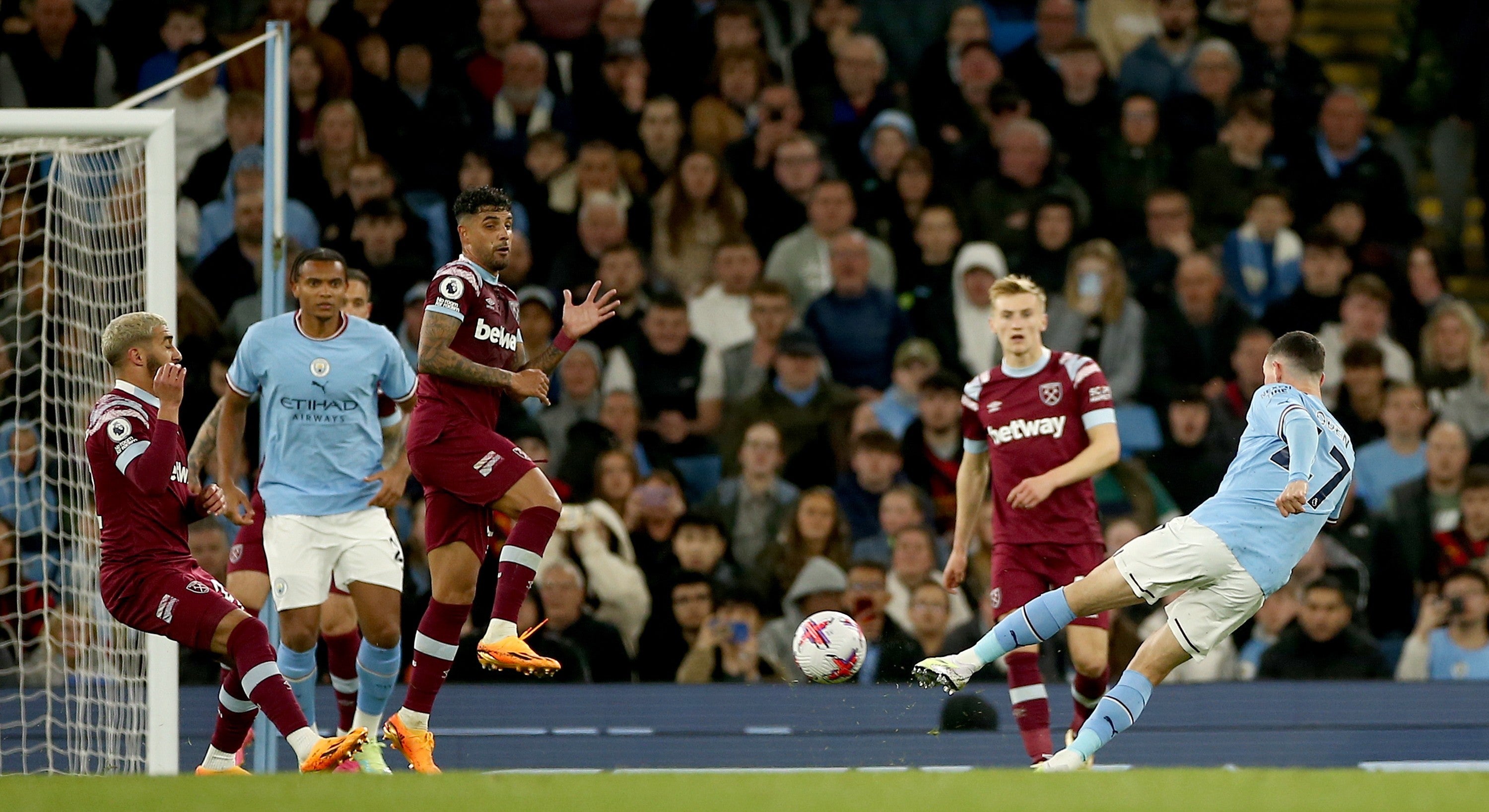 Manchester. Der Titelverteidiger setzte sich am Mittwoch in einem Nachtragsspiel gegen das abstiegsbedrohte West Ham United mit 3:0 (0:0) durch. Die Tore für die Elf von Pep Guardiola erzielten Nathan Ake (50.), Erling Haaland (70.) und Phil Foden (85.). Der Norweger Haaland stellte mit seinem 35. Ligator in einer Saison einen Rekord auf.