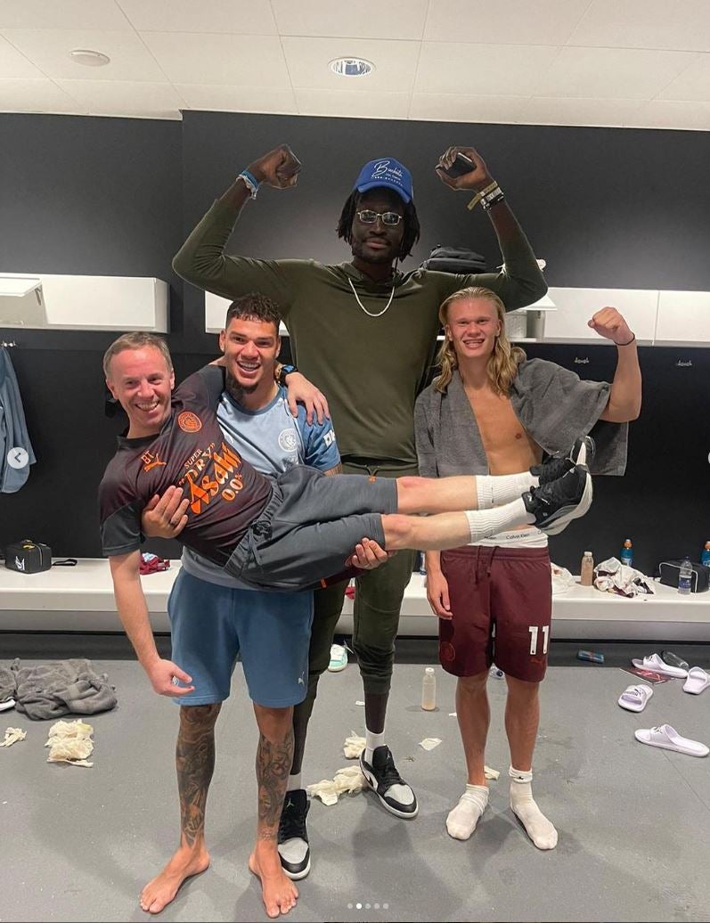 Mit einem Gardemaß von 1,94 Meter Körpergröße ist der Superstar von Champions League-Sieger Manchester City es gewöhnt der Allergrößte zu sein. Nicht aber, wenn es Basketball-Spieler in der Umkleidekabine zu Besuch ist. So geschehen beim Premier League-Spiel zwischen City und West Ham (3:1) in London. Denn neben dem 2,29 Meter großen Mamadou N'Diaye wirkt auch Erling Braut Haaland wie ein Zwerg. Geteiltes Leid ist halbes Leid: Auch Haalands Klubkollegen Ederson und Bernado Silva wirken auf dem Schnappschuss ungewohnt klein